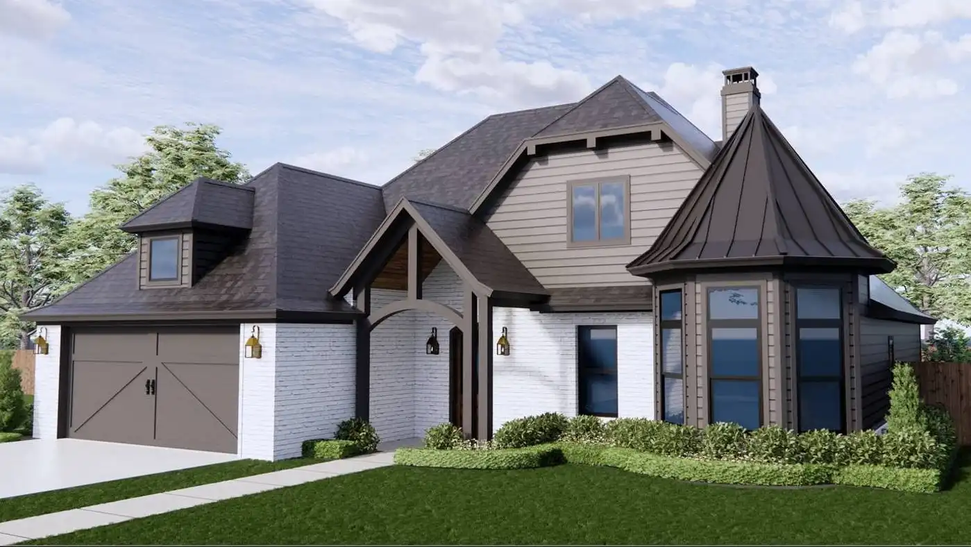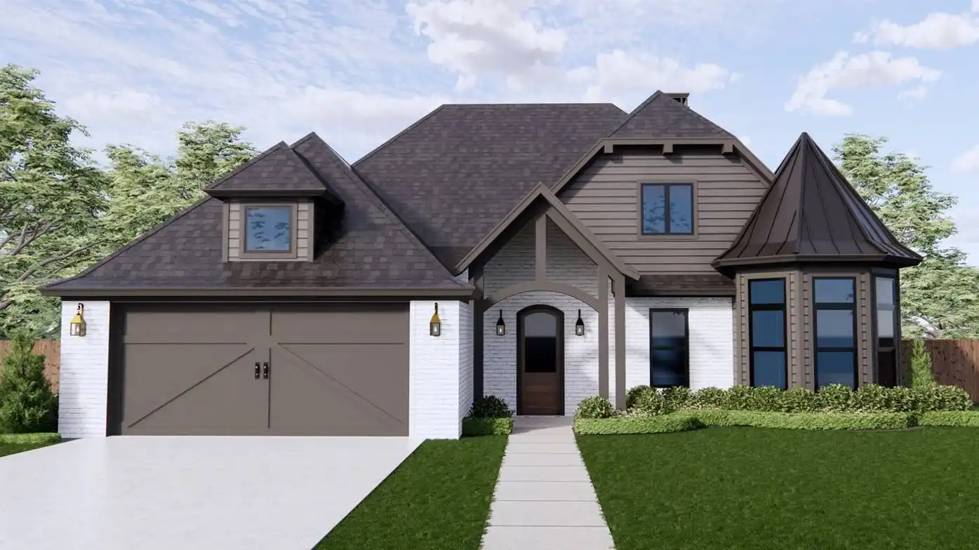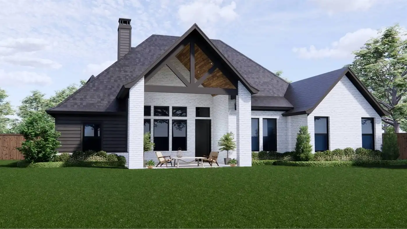 Just one look at House Plan 9246 and you'll know how special it is! It's not every day you find a classic European design with French country style perfectly suited for building in a neighborhood. This lovely home offers 1,983 square feet with open living, four split bedrooms, and two baths. The layout features a front-entry, two-car garage, a long entry foyer, and a great room including an island kitchen and a beamed living space. The primary suite and its five-piece bath fill out one side while three bedrooms are on the other in an opposite hallway. There's even covered outdoor space to expand into the fresh air!