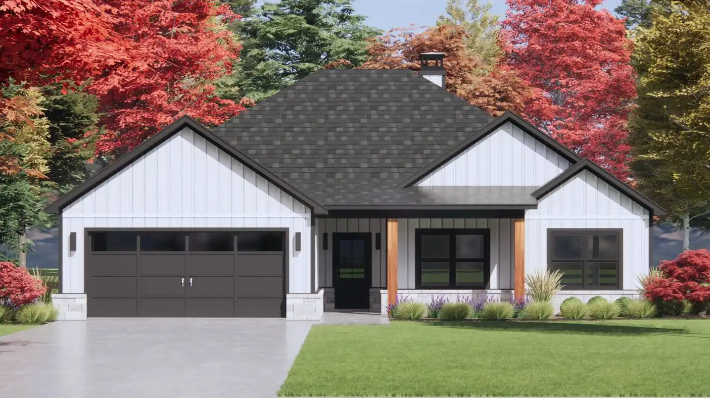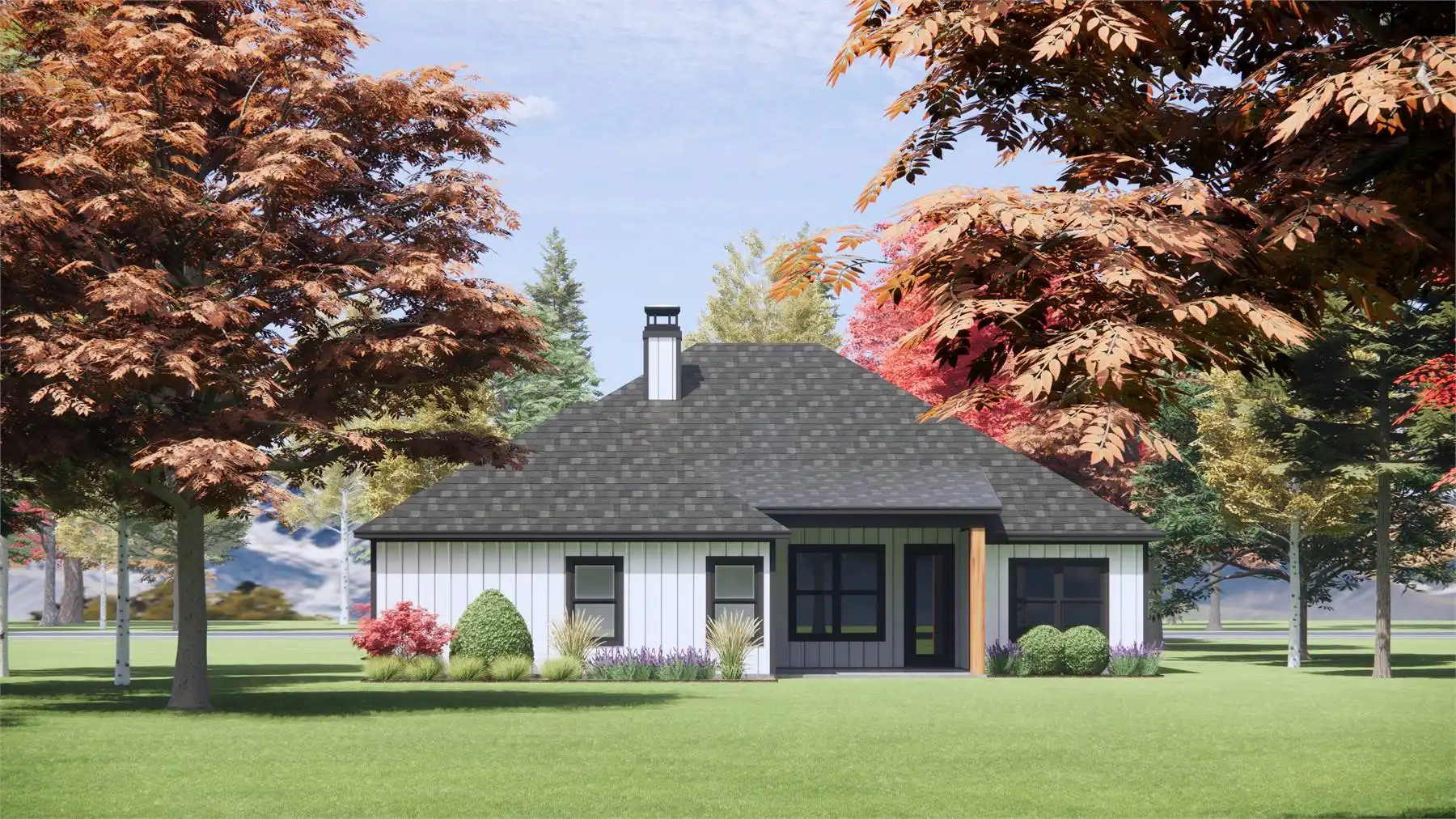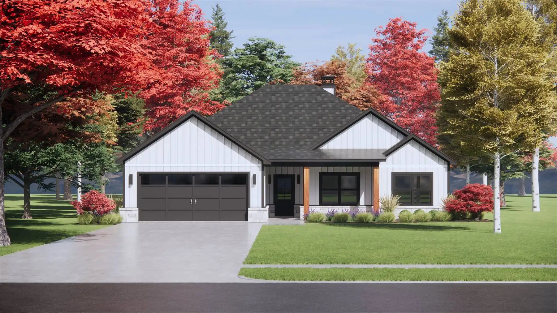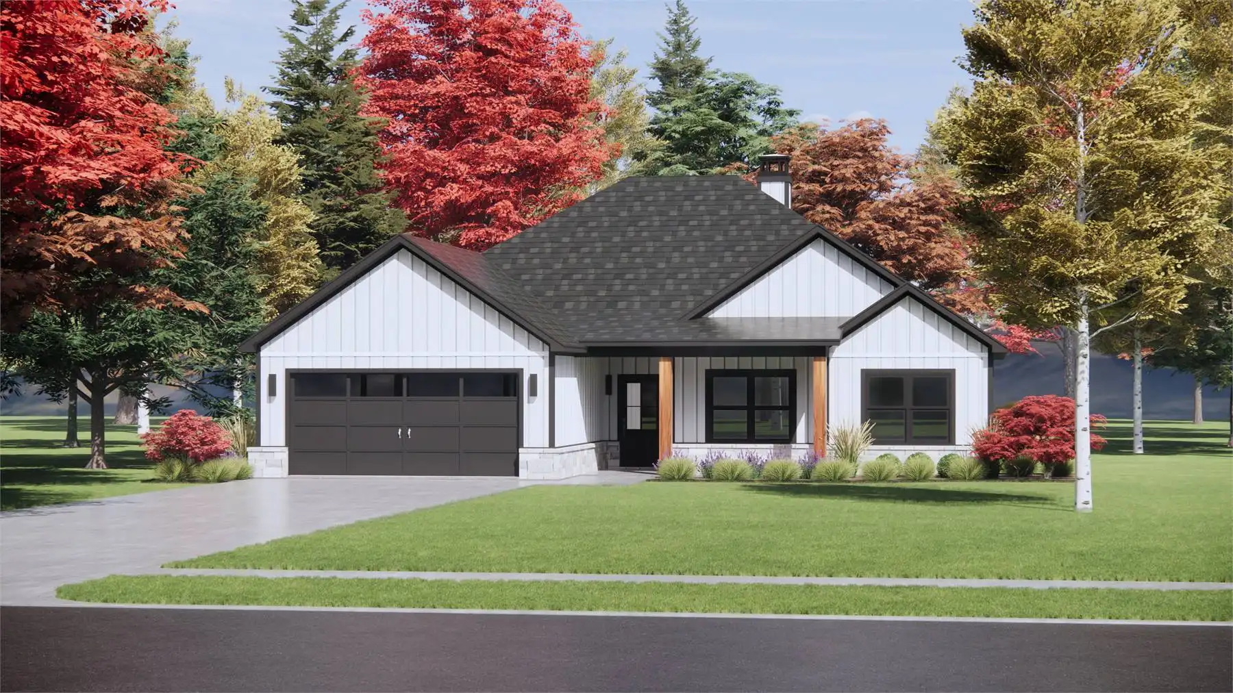 Designed with everyday living in mind, this home features 1,987 square feet of heated space with 4 bedrooms and 2 baths on one thoughtfully planned level. The open layout allows the great room, family room, and dining area to flow together, highlighted by a cozy fireplace and generous ceiling heights. A well-equipped kitchen includes an island and walk-in pantry that support both casual meals and entertaining. The main-level primary suite offers a peaceful retreat with a walk-in closet and a bath complete with double sinks and a separate tub and shower. Additional bedrooms are split to enhance privacy and flexibility. Practical spaces like the mud room and first-floor laundry add to the home’s functionality. With covered front and rear porches, this design delivers a relaxed, welcoming atmosphere that feels easy to call home.