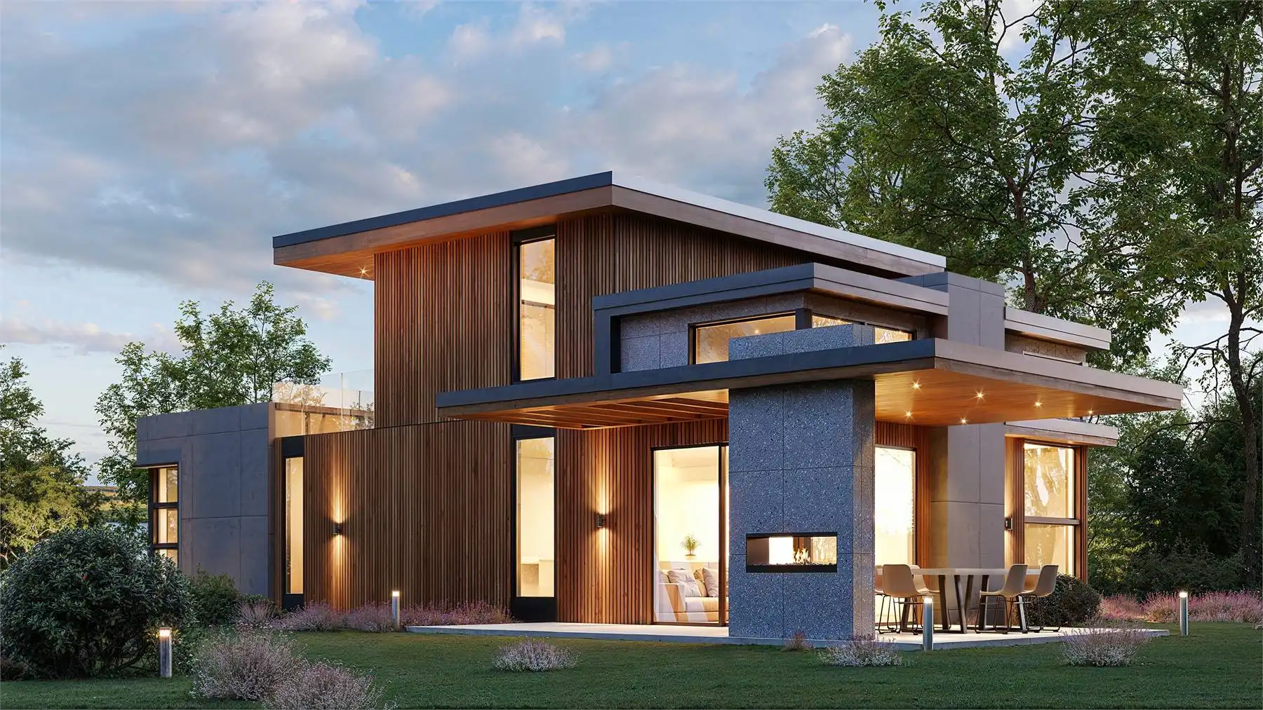 Make the most of a compact lot with a home like House Plan 9271! This attention-grabbing contemporary design boosts two stories totaling 1,432 square feet over a drive-under garage to minimize its footprint. The main level includes open living with a fireplace and an island kitchen beside a covered patio with another fireplace, a guest bedroom, a hall bath, and the laundry. The primary suite is privately located upstairs and has a five-piece bath and its own balcony. Just imagine building this design in a dream location!