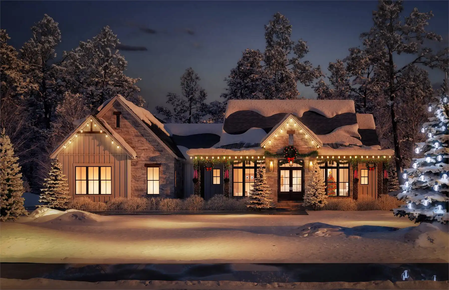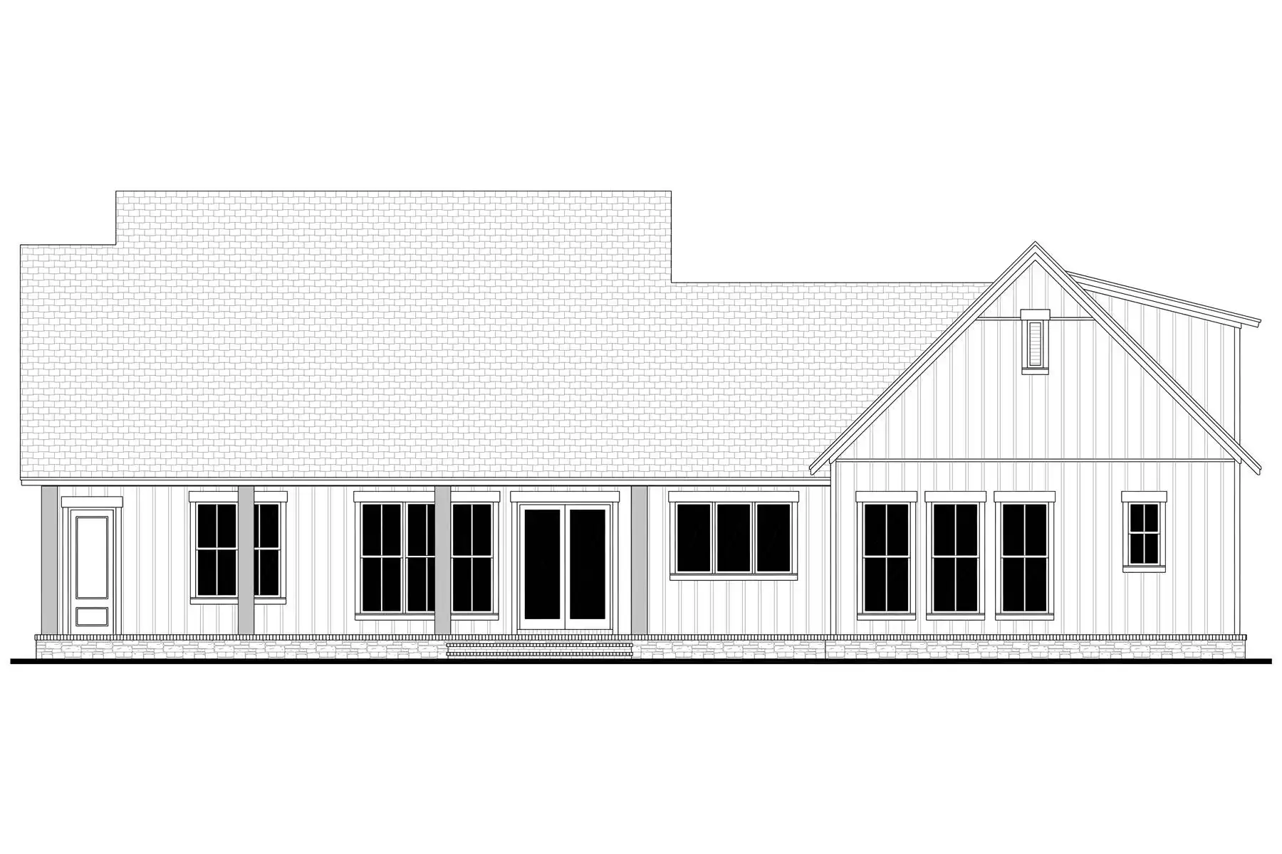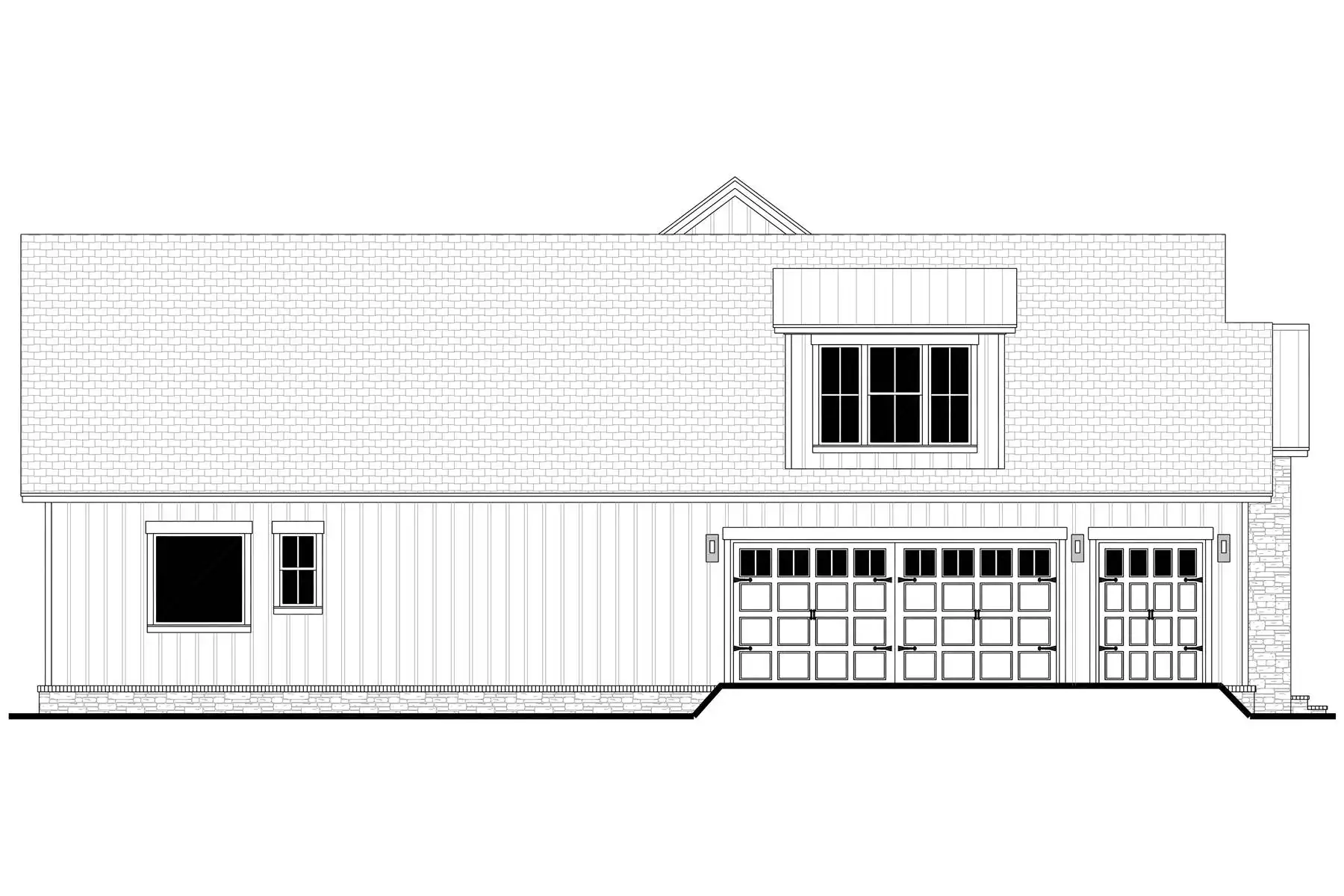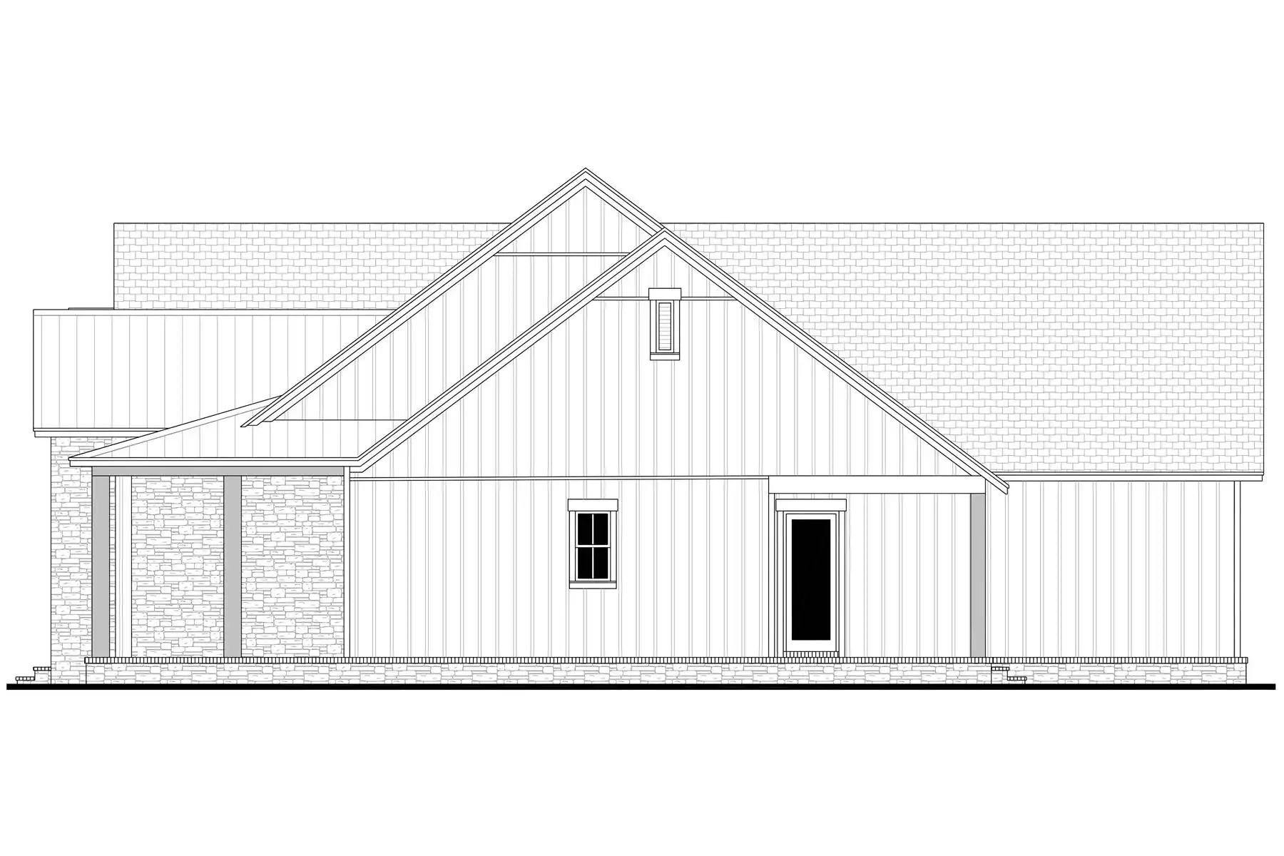 Explore the charm of country living with House Plan 9291, a modern cottage where thoughtful design meets timeless appeal. The exterior blends stone and board-and-batten siding for an inviting, elegant look. Inside, the open-concept great room, dining area, and kitchen feature a vaulted ceiling with exposed decorative beams, perfect for family living and entertaining. This home includes three spacious bedrooms and three and a half baths, with the main suite offering a vaulted ceiling, luxurious bath, and a generously sized closet accessible through the laundry room. Enjoy the outdoors from the semi wrap-around porch and customize the versatile bonus room to suit your family's needs. Experience the ideal combination of style and functionality in this modern farmhouse, crafted for those who love to entertain and appreciate fine details.