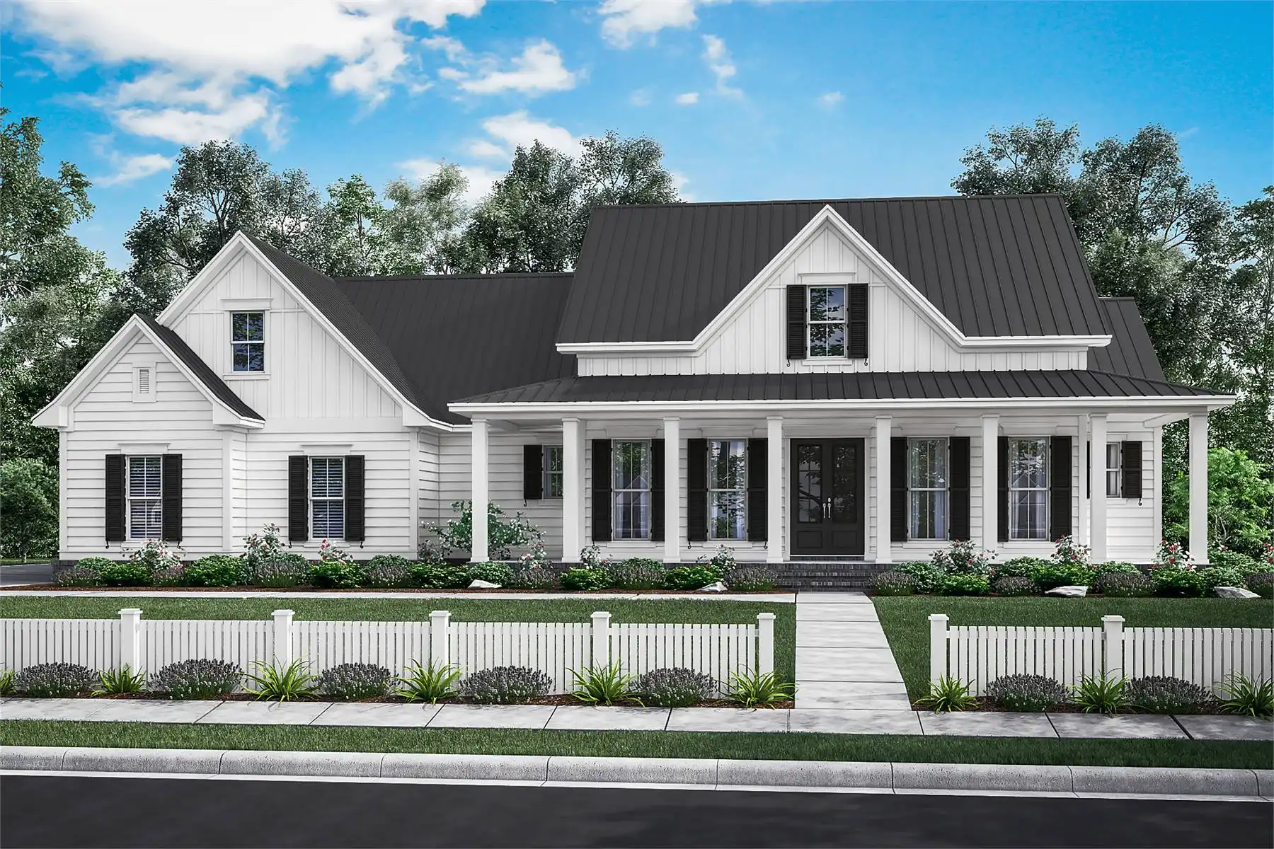 Step into the warmth and elegance of House Plan 9292, a 2,282-square-foot country-style home perfect for families seeking comfort and style. A gorgeous wraparound porch leads you to a welcoming foyer. The spacious great room, with its cozy fireplace, flows seamlessly into the kitchen and dining areas, making it ideal for gatherings. The gourmet kitchen features a large island, ample counter space, and a walk-in pantry. The main floor primary suite offers a spa-like bathroom and a spacious walk-in closet. Practical features include a laundry room and mudroom. An optional bonus room above the garage provides flexibility, perfect for a playroom, home office, or guest suite. Traditional country elements like the front and rear covered porches add charm and outdoor living space. The attached two-car garage offers convenient and secure parking. This house plan blends timeless design with modern functionality, making it perfect for a family home or peaceful retreat.