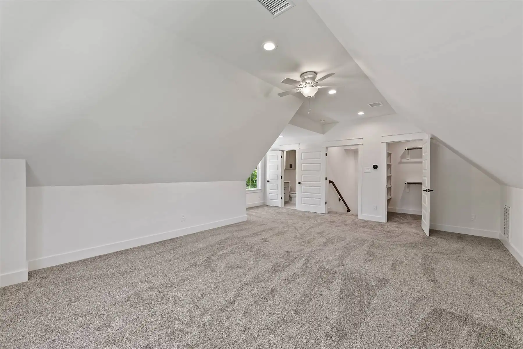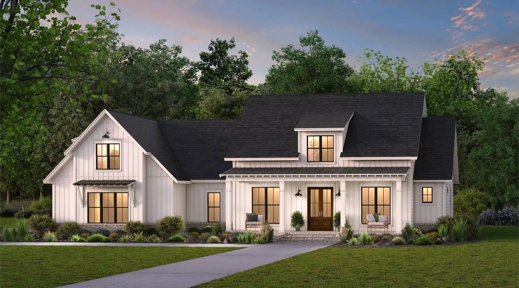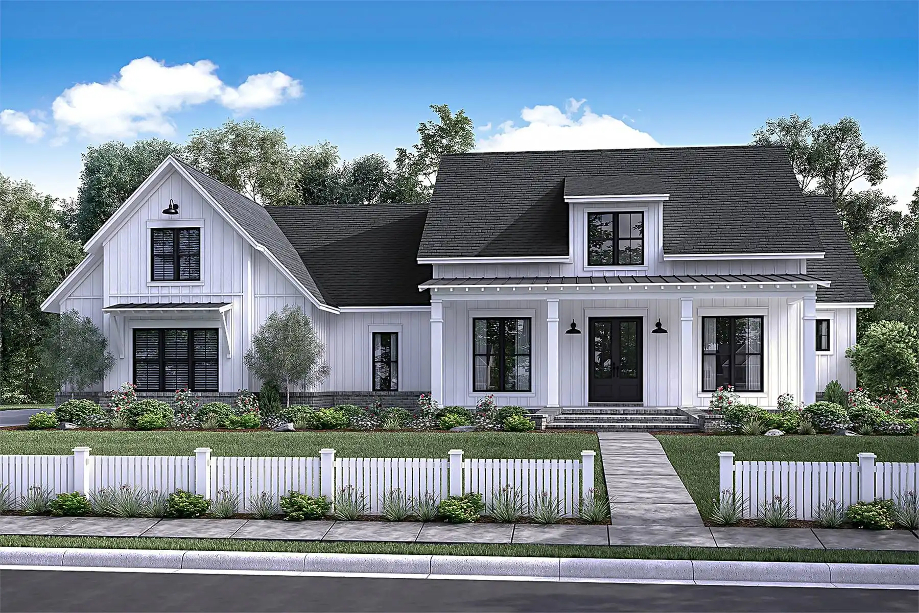 Need a farmhouse with room to grow? See what House Plan 9295 has in store! This midsize design offers 2,686 square feet with four bedrooms and two-and-a-half bathrooms on one story, but there’s also a bonus over the garage that you can turn into whatever else you may need. The split-bedroom layout places the foyer, dining room, great room, island kitchen, and breakfast nook in the center of the floor plan. On one side, there’s a hallway with three bedrooms and a divided four-piece hall bath to share. The primary bedroom suite is on the opposite side of the house and has a five-piece bath and a walk-in closet that connects directly to the laundry room. House Plan 9295 also has a covered patio in back for expanding into the fresh air!