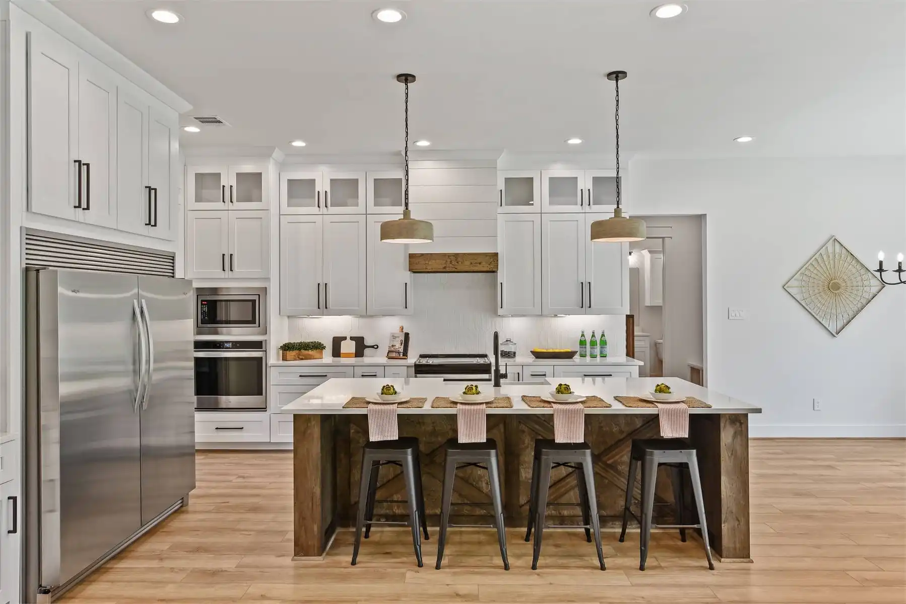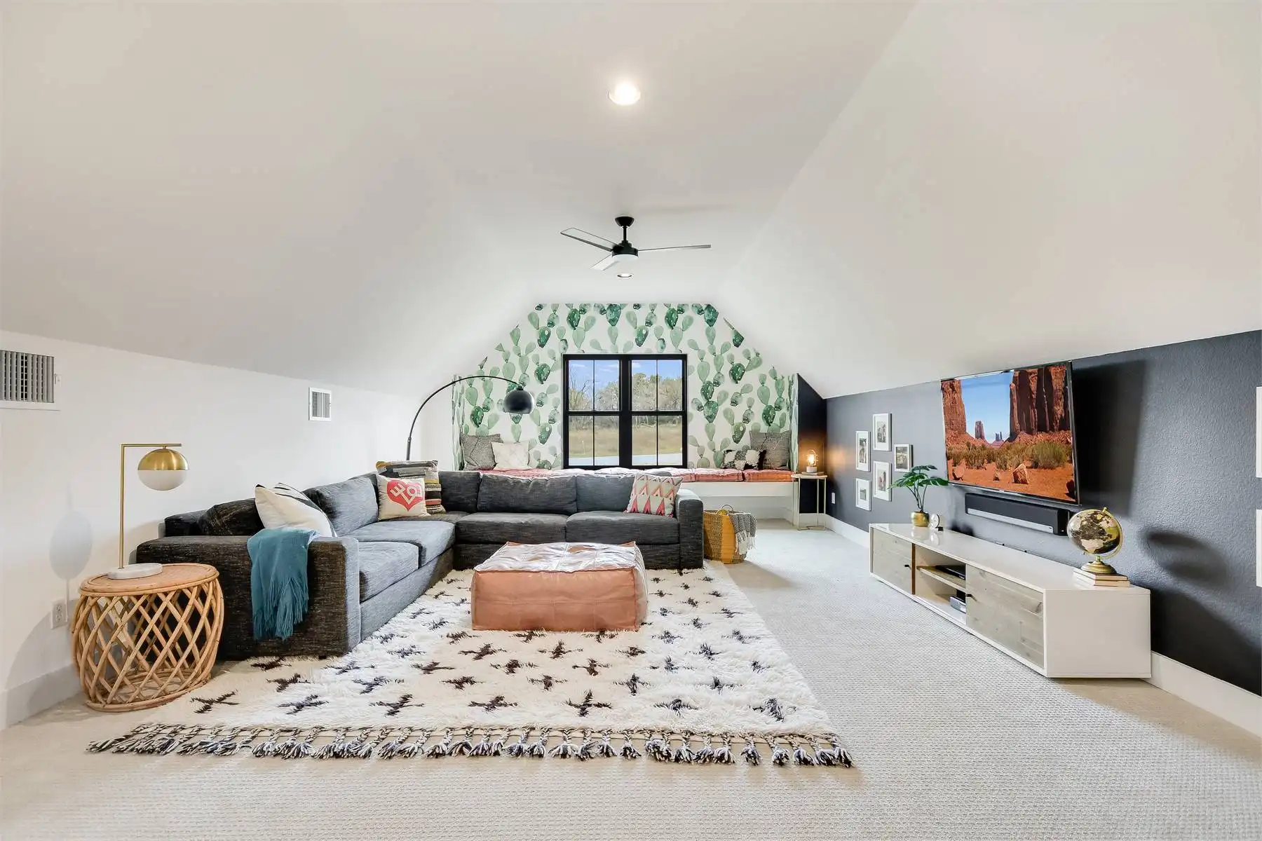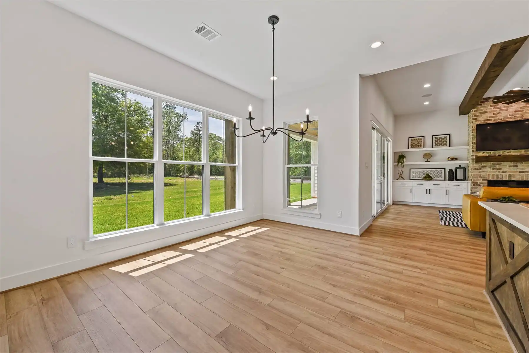 Need a farmhouse with room to grow? See what House Plan 9295 has in store! This midsize design offers 2,686 square feet with four bedrooms and two-and-a-half bathrooms on one story, but there’s also a bonus over the garage that you can turn into whatever else you may need. The split-bedroom layout places the foyer, dining room, great room, island kitchen, and breakfast nook in the center of the floor plan. On one side, there’s a hallway with three bedrooms and a divided four-piece hall bath to share. The primary bedroom suite is on the opposite side of the house and has a five-piece bath and a walk-in closet that connects directly to the laundry room. House Plan 9295 also has a covered patio in back for expanding into the fresh air!