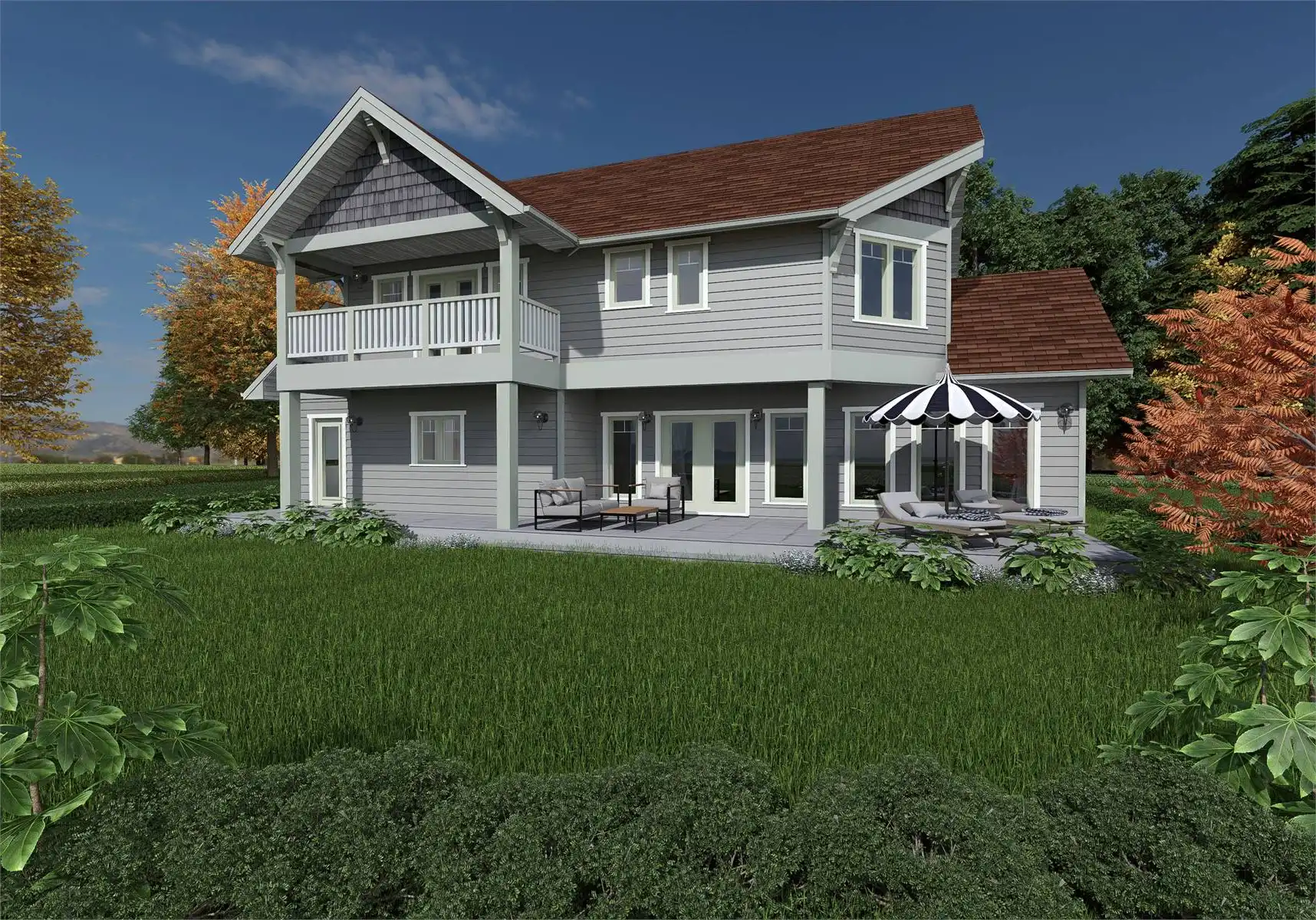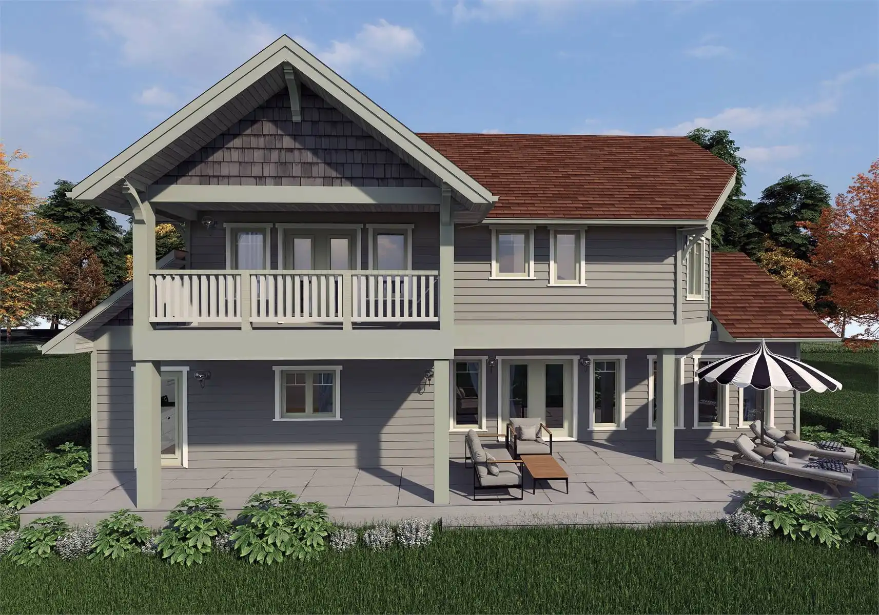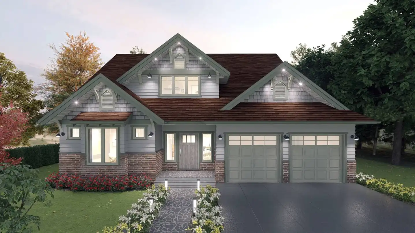 Stop and explore House Plan 9301 if you're in the market for a two-story cottage for a family! This beautiful design has gables with Craftsman elements and 2,559 square feet to enjoy inside. The main level features the open-concept living areas, a den, a full bath, the laundry/mudroom, and a back porch that spans the whole rear of the house. All three bedrooms are upstairs. The primary suite has five-piece bath and a private deck while the other bedrooms share a hall bath. This kind of layout with grouped bedrooms is ideal for those who have younger kids, as well as those who prefer a clearly defined home with living and sleeping zones!