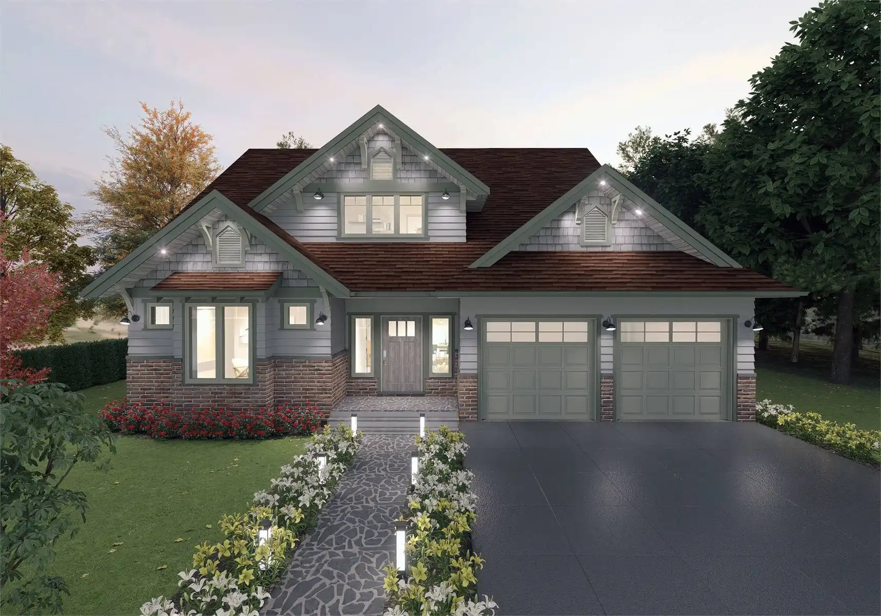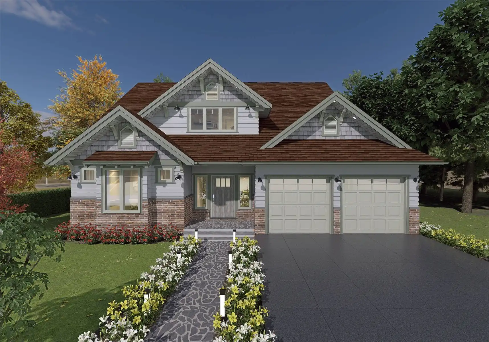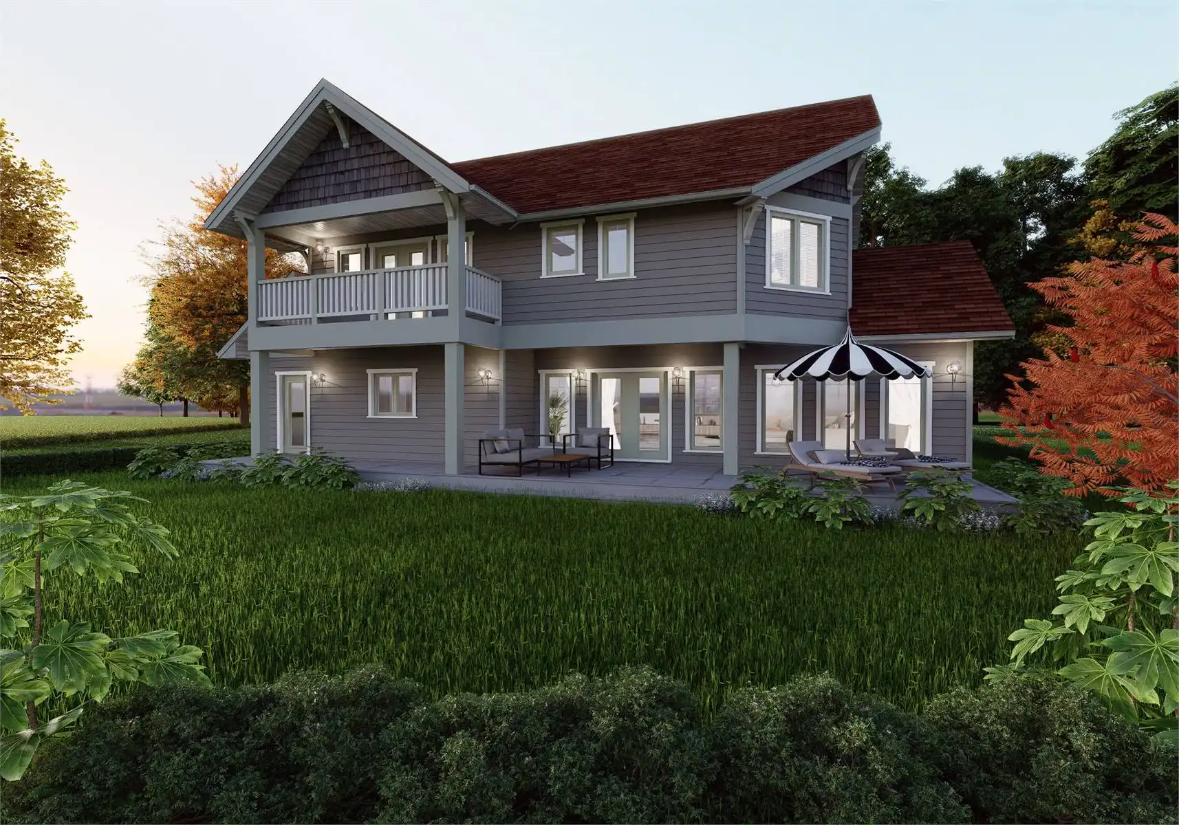 Stop and explore House Plan 9301 if you're in the market for a two-story cottage for a family! This beautiful design has gables with Craftsman elements and 2,559 square feet to enjoy inside. The main level features the open-concept living areas, a den, a full bath, the laundry/mudroom, and a back porch that spans the whole rear of the house. All three bedrooms are upstairs. The primary suite has five-piece bath and a private deck while the other bedrooms share a hall bath. This kind of layout with grouped bedrooms is ideal for those who have younger kids, as well as those who prefer a clearly defined home with living and sleeping zones!