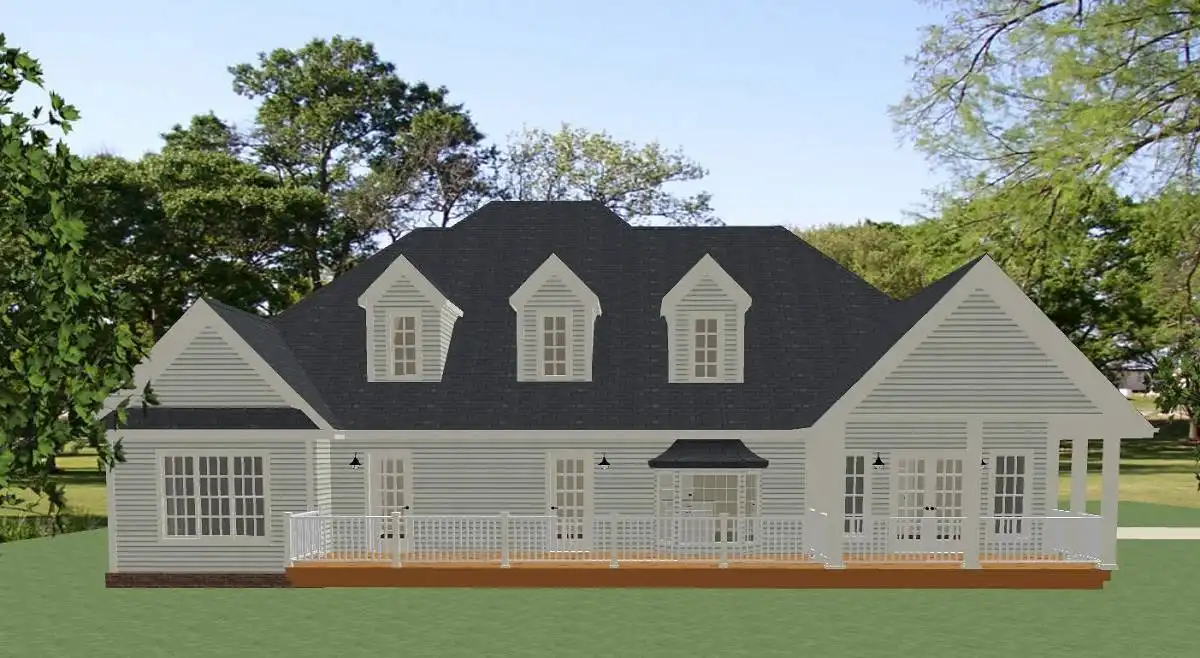 This 2-story offers style and convenience without compromising the farmhouse character. As you entry from the porch there is a open and columned formal dining on the right.  From the foyer you enter into a vaulted family room with a fireplace, built-in shelving and French doors leading out to a spacious deck and covered porch accessible from the master bedroom. The home office with a back yard view provides the perfect work space. The large kitchen is complete with a breakfast nook set in a bay, angled sink and eating bar, double ovens and an large walk-in pantry. A over-sized main level laundry and mudroom with bench seating, a sink and plenty of cabinets and counter space provides extra efficiency for busy schedules and for an active family. The main level master suite offers privacy as well as luxury with a corner soaking tub, separate shower, double vanities and a large walk-in closet. Two main level bedrooms share a large Jack & Jill Bathroom with double vanities and plenty of linen storage. The second level provides a large guest suite complete with a walk-in closet and full bath. A window seat set in a dormer provides extra hallway light. Additional storage is provided as well as an optional bonus room over the garage, perfect for a future recreation room.