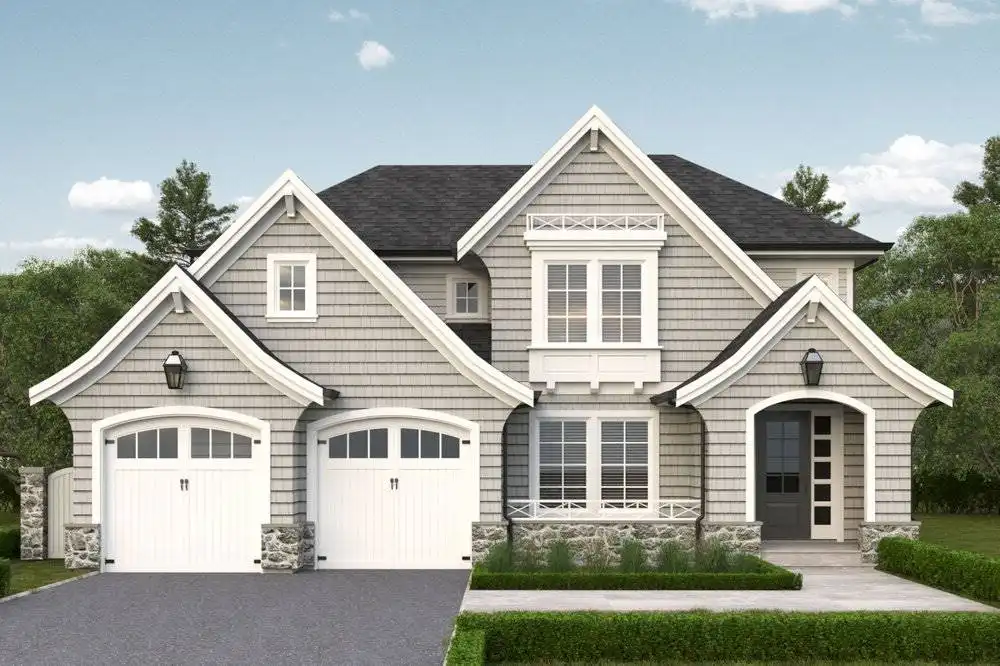 Step into a welcoming vestibule that opens into a spacious foyer, highlighting the charm of House Plan 9316, a Cape Cod home thoughtfully designed for families. The elegant dining room is perfect for hosting guests and family dinners. The great room serves as a cozy hub, offering easy access to the covered rear patio and flowing seamlessly into a spacious kitchen with a central island, an eating bar, and a casual breakfast nook ideal for morning routines. The stunning primary suite, complete with a luxurious ensuite featuring a spa-like soaking tub and dual vanities, is a standout feature. Each of the three additional bedrooms boasts a spacious walk-in closet for added privacy. The finished basement provides flexible customization options to suit your family's needs, featuring a large bedroom and bathroom, along with a second room that can be used for hobbies or as an additional bedroom.
