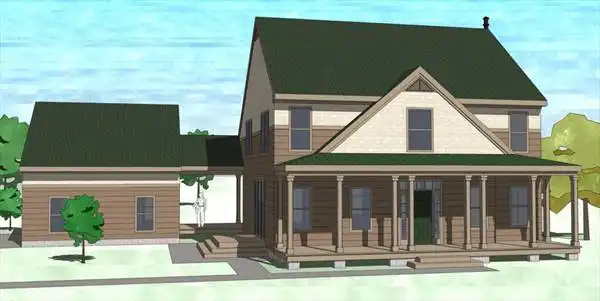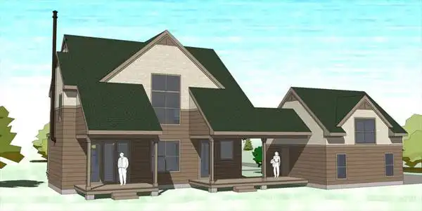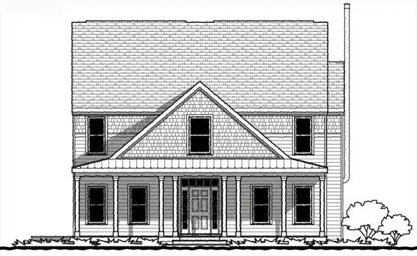 This gorgeous Lake house plan has a wonderful covered porch perfect for relaxing and entertaining. As you enter the home the stairs lead directly to the second floor. Before entering the kitchen and living area is a full bathroom. In the kitchen is a breakfast area and a bar for sitting. This plan provides a magnificent two-story glass wall for viewing a shoreline or natural setting to the rear of the house. There are four bedrooms efficiently laid out in a compact 2,033 SF two-story plan. The front and rear porches provide outdoor entertainment for family gatherings. The garage is optional and is attached to the house by an extension of the porch roof. There is plenty of storage in the garage and on the second floor off the back bedrooms.