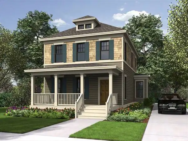 The two-story four-bedroom home, ideal for a coastal or urban neighborhood setting. Under 2,200 SF total, this house plan has three spacious second floor bedrooms, with an additional large bedroom and full bath located on the first floor. The kitchen has a wonderful breakfast nook with access to the read porch and Garage. At only 29 feet wide, this floor plan is ideal for a narrow urban or coastal lot. The attached side loading garage located in the rear is a feature you don't find on many house plans.
