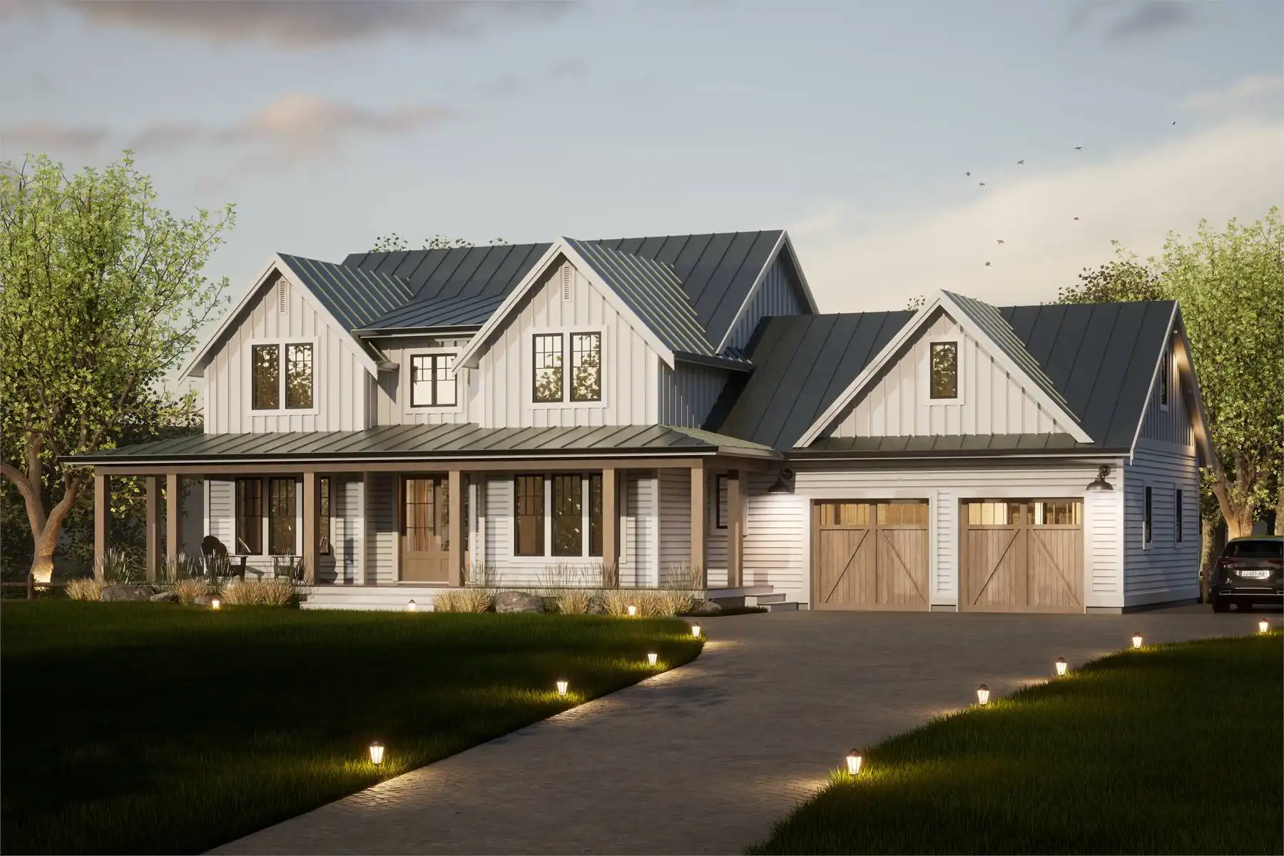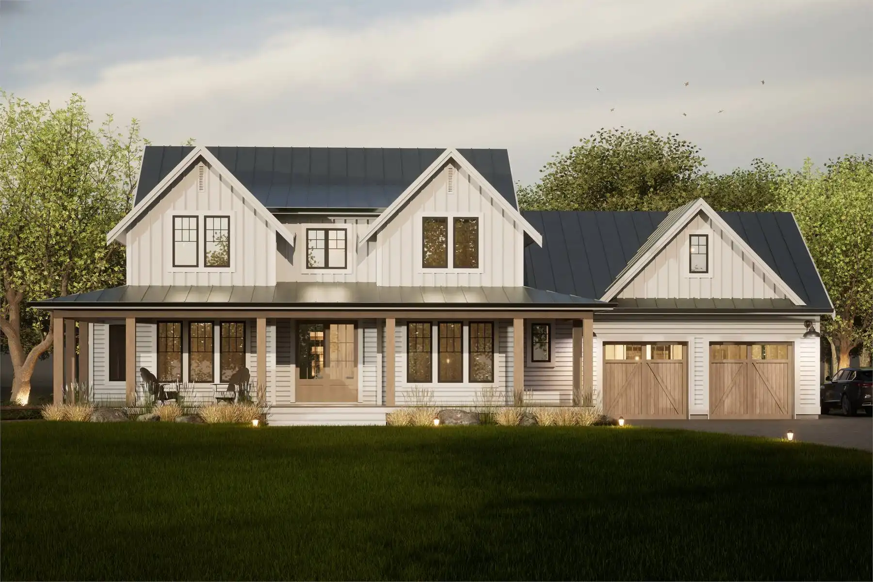 Step into this modern farmhouse that combines elegance with practicality. Upon entering the foyer, a charming den greets you on the right, while a guest suite with a private bathroom is situated on the left. Beyond the graceful staircase, the home opens into an inviting great room, complete with a cozy fireplace, a dining area, and a kitchen boasting a large island—ideal for hosting gatherings. This open space seamlessly connects to a covered deck, perfect for enjoying the outdoors. The main floor also includes a pantry and a handy mudroom with laundry facilities. Ascend to the upper level to find the exquisite master bedroom, which features an en-suite bathroom and a spacious walk-in closet. Additionally, two other bedrooms share a beautifully designed bathroom, providing plenty of room for family or visitors.