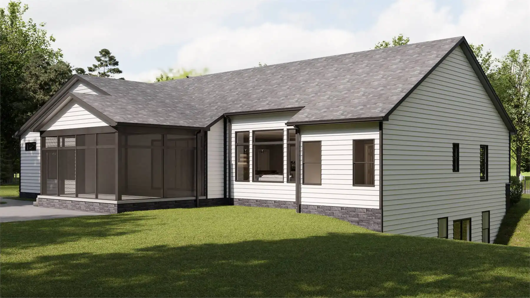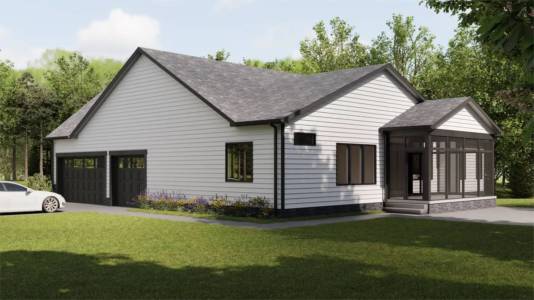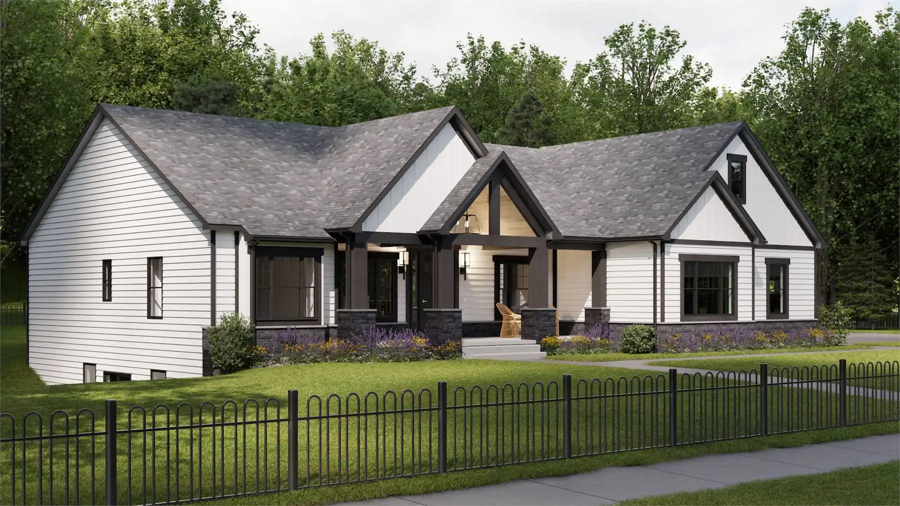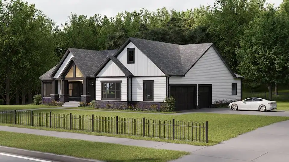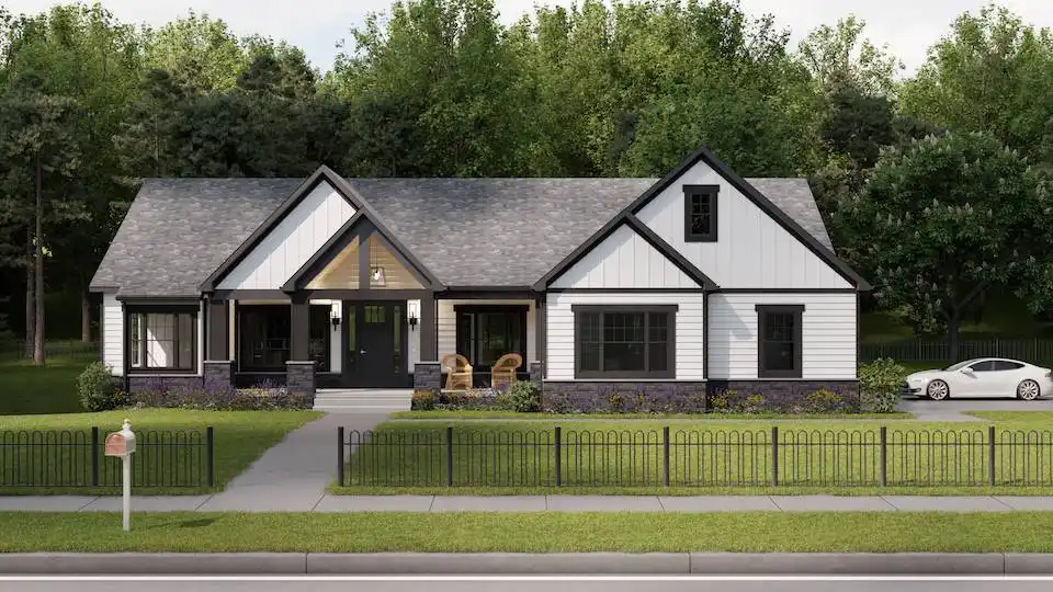 House Plan 9329 is an exquisite one-story Craftsman house plan, encompassing 2,283 square feet, combines sophistication with practicality. The heart of the home is its open-concept living area, where the kitchen, dining, and living rooms flow effortlessly together, perfect for daily life and entertaining. The gourmet kitchen, complete with a spacious island, abundant counter space, and state-of-the-art appliances, is a chef's delight. The primary suite offers a serene escape with its luxurious ensuite bathroom and expansive walk-in closet. Two additional bedrooms ensure comfort and flexibility for family or guests, while a dedicated home office provides a quiet space for work or study. The standout feature is the three-car garage, offering ample storage and workspace. Thoughtfully designed with high-quality finishes, this home is the epitome of modern living, blending style and functionality seamlessly.