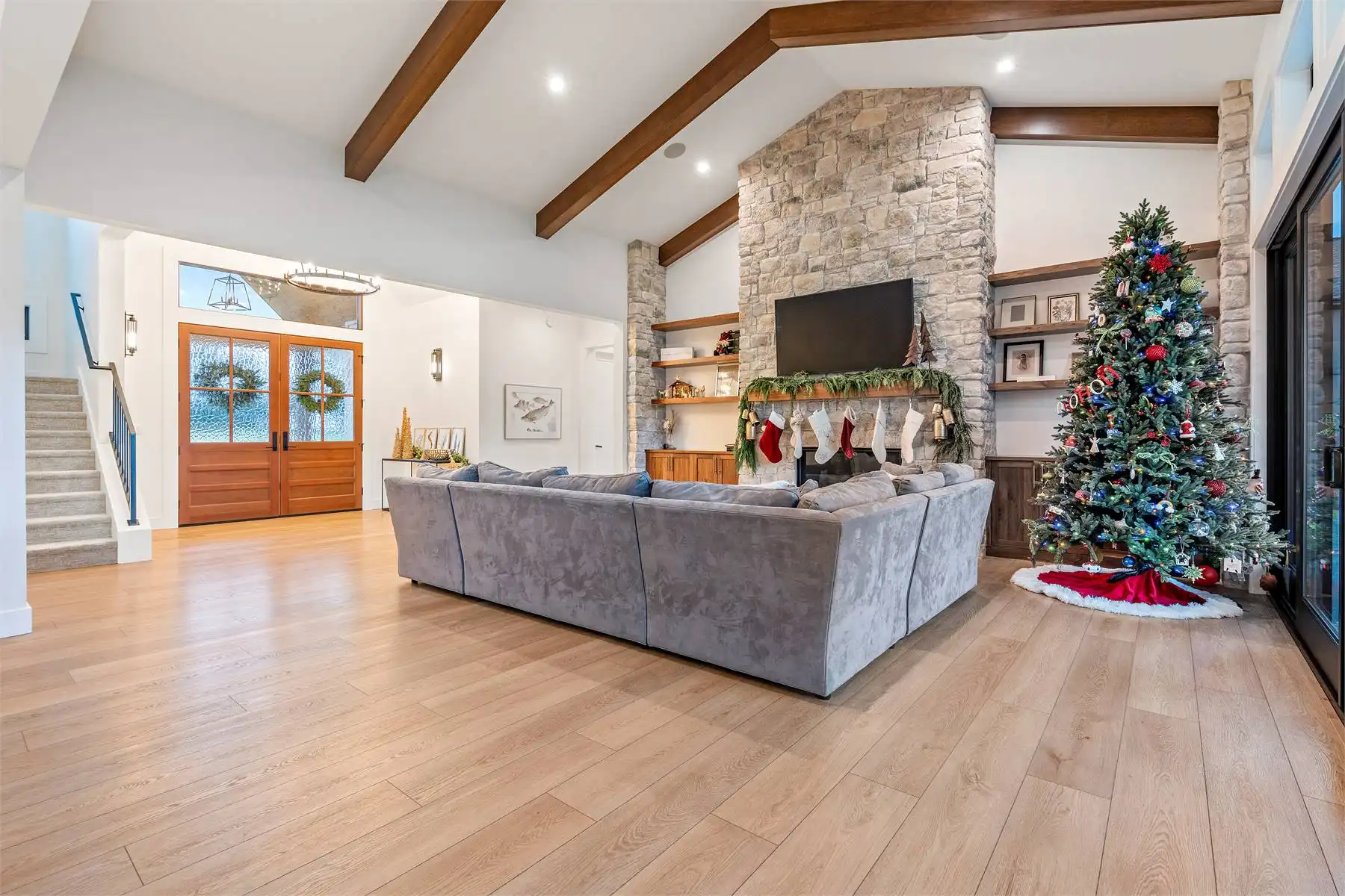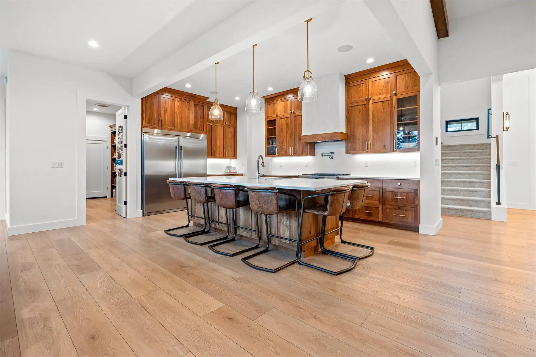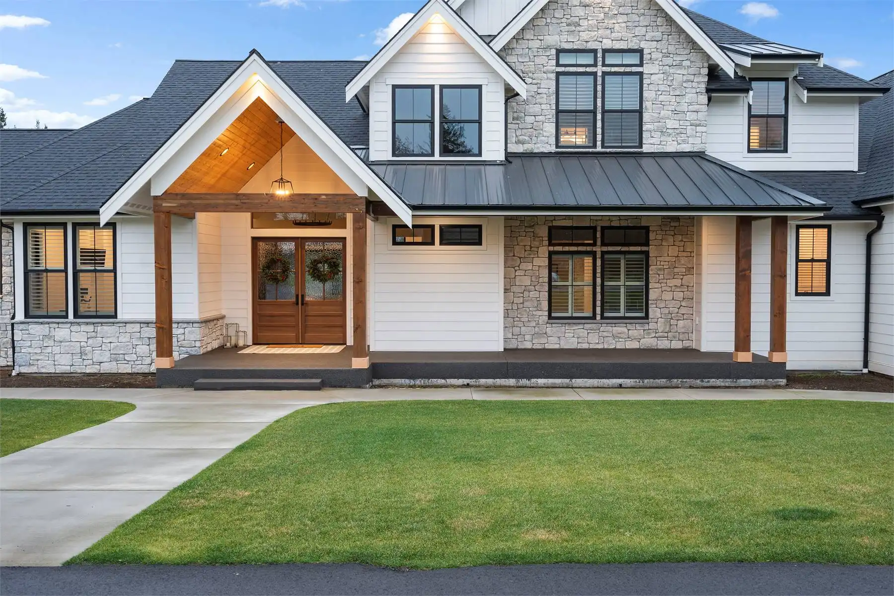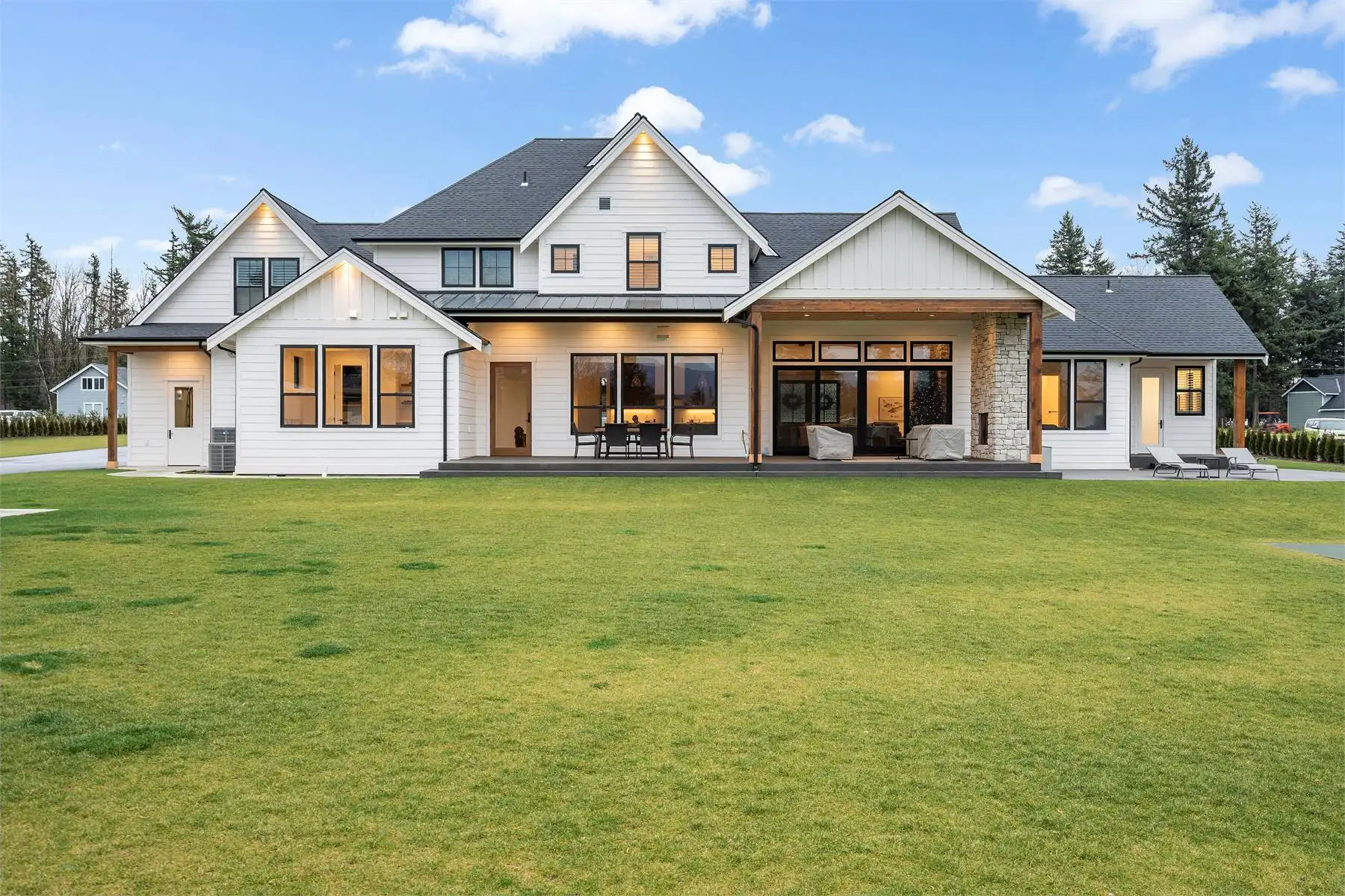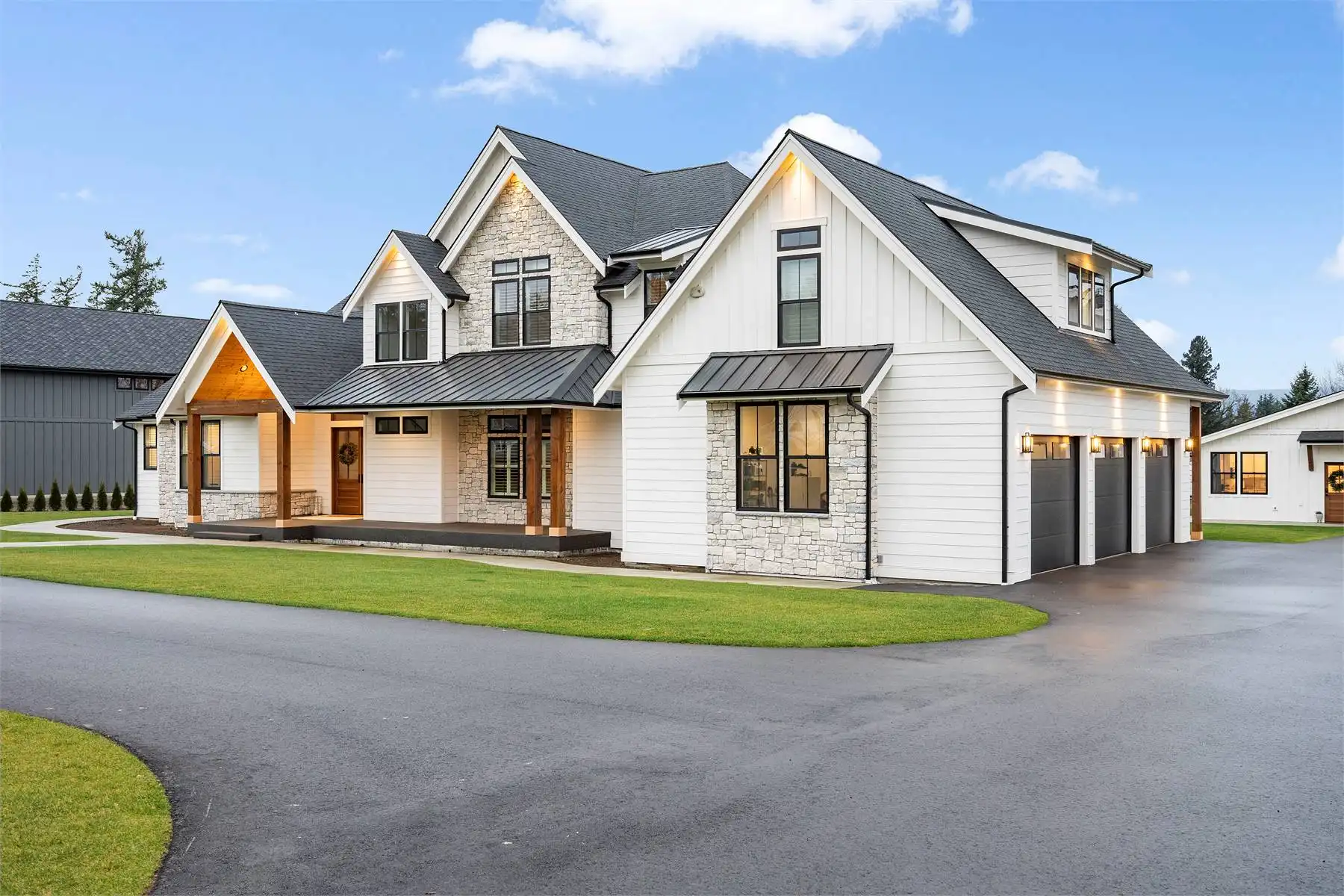 House Plan 9350 is an amazing two-story farmhouse of 4,704 square feet that leaves nothing to be desired! The main level includes an open-concept great room with an island kitchen and vaulted living area, a luxe five-piece primary suite, a gym, a media room, an office, a large laundry room, a powder room, a mudroom, and outdoor living space in back. Upstairs, there are three smaller bedroom suites, a study room, and a huge bonus room. With all this space, the whole family can spread out or come together in comfort and style!