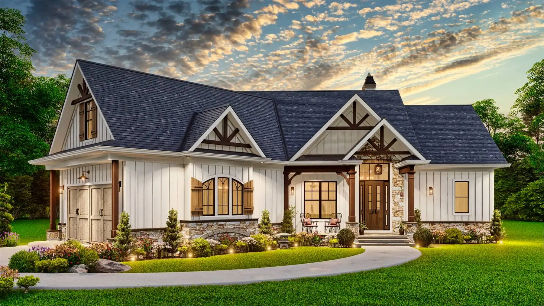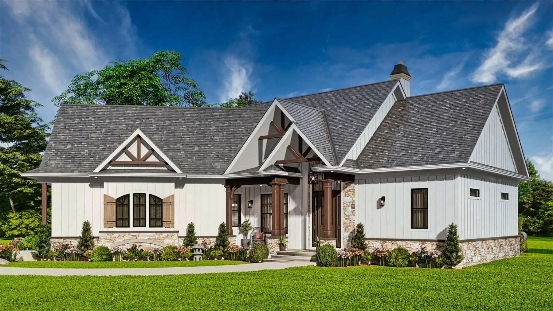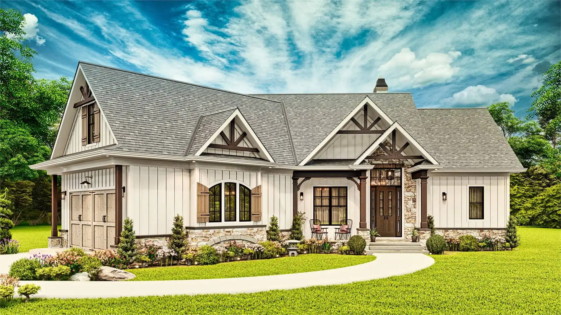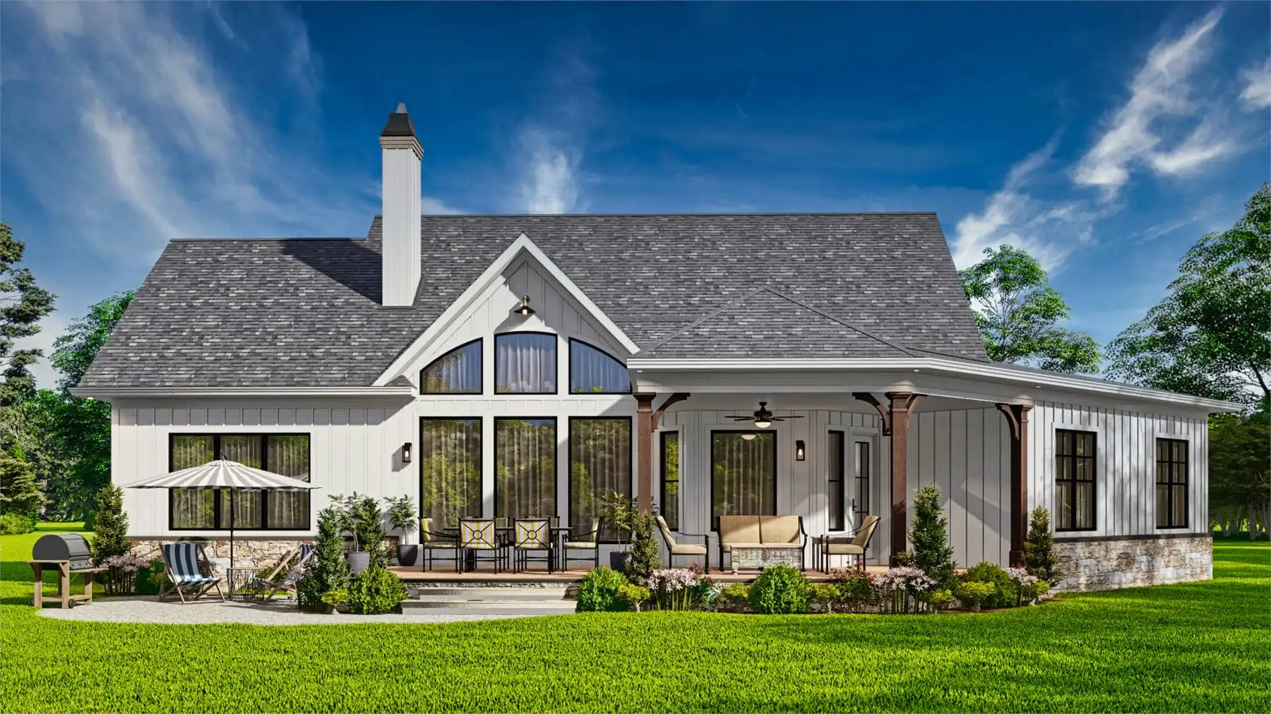 Introducing House Plan 9354, a modern farmhouse that perfectly balances charm and functionality. This inviting design offers 1,759 square feet of living space, featuring three bedrooms and two baths. The open floor plan is highlighted by a vaulted ceiling in the great room, creating a welcoming and spacious atmosphere. The kitchen boasts a large island and a cozy breakfast nook, while the primary bedroom on the main floor adds convenience. Enjoy outdoor living with covered front and rear porches, making House Plan 9354 an ideal blend of style and comfort.