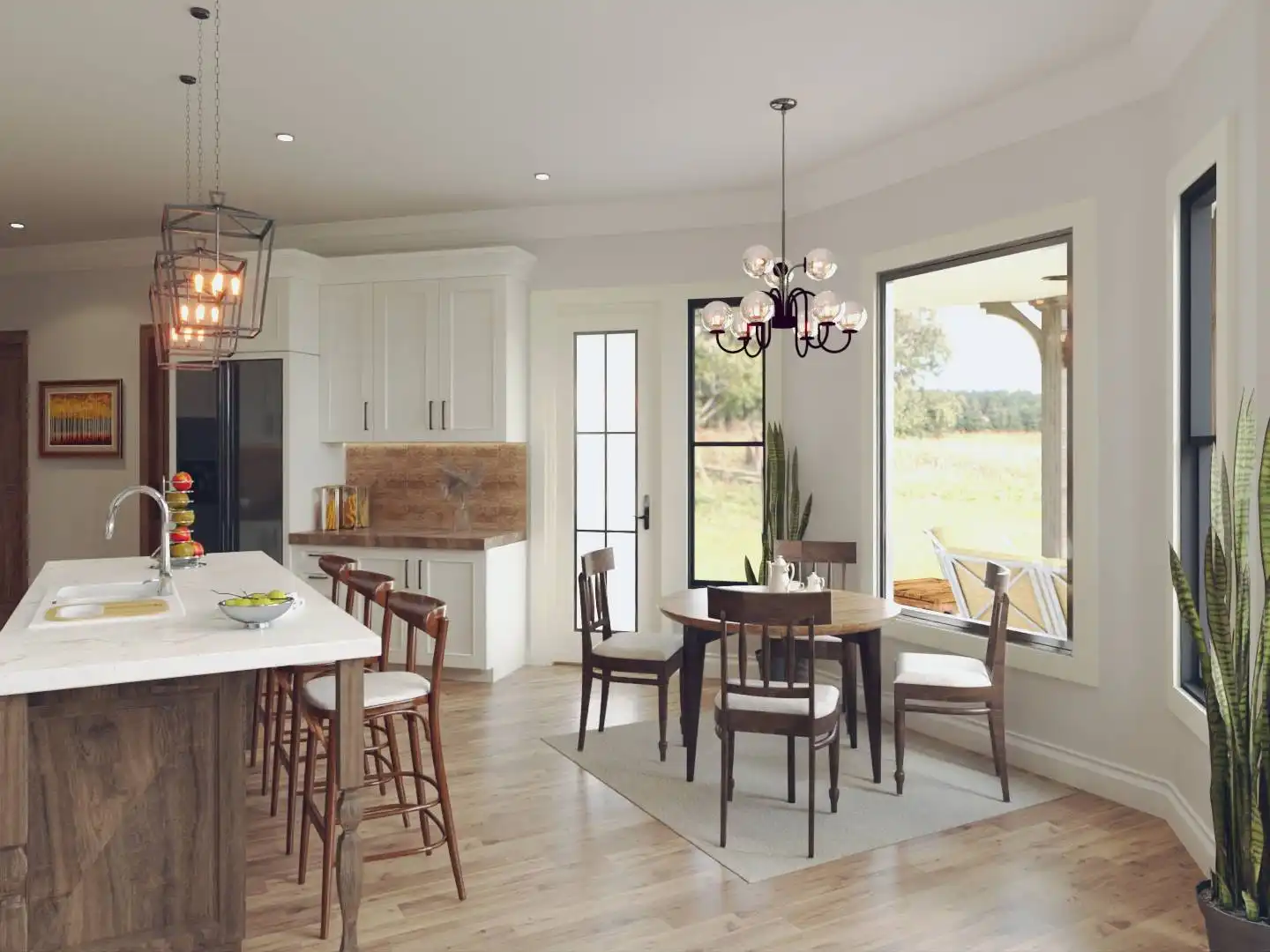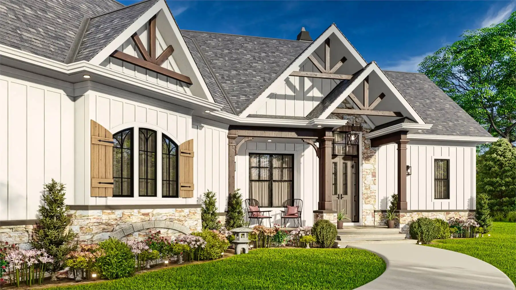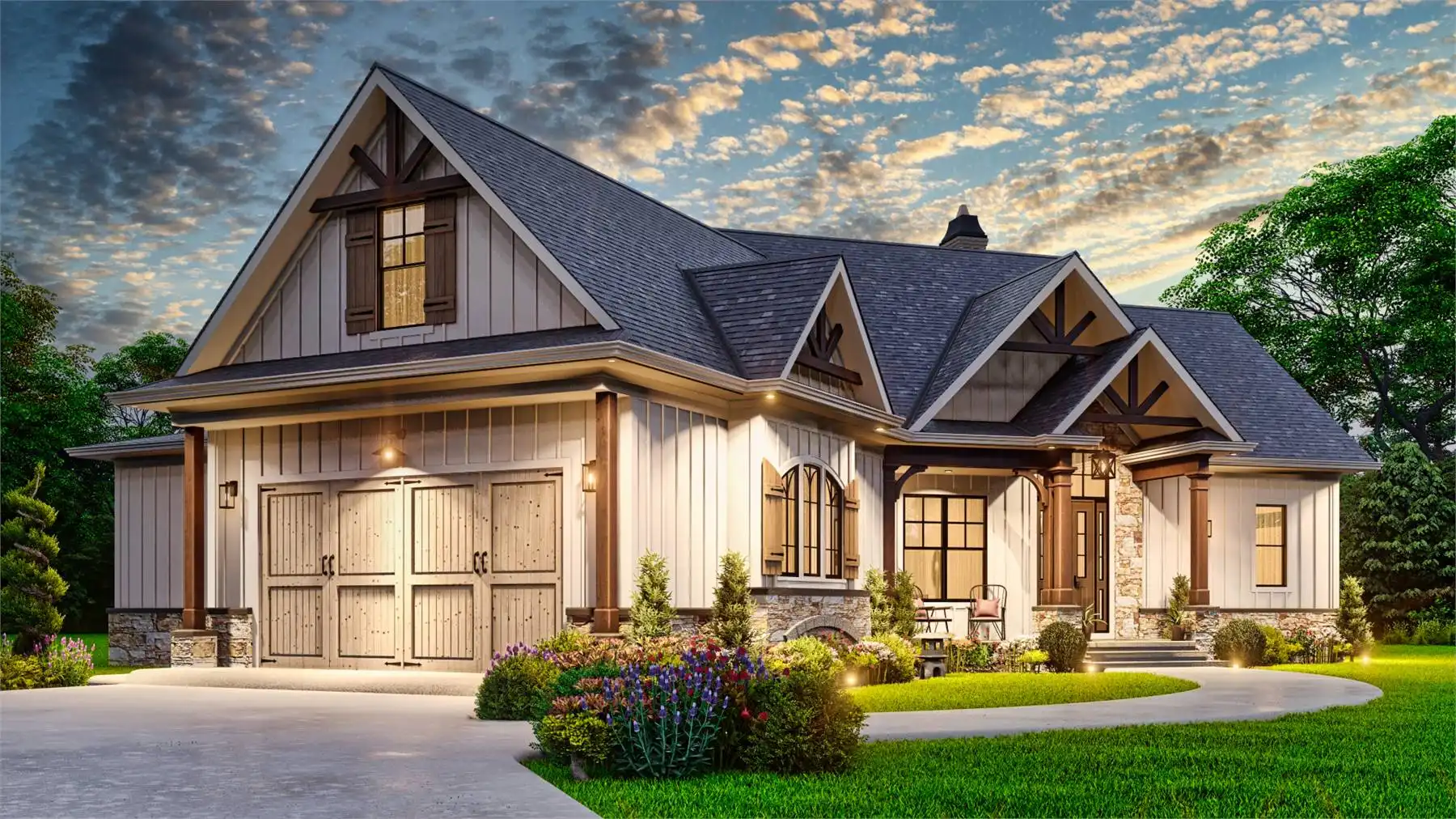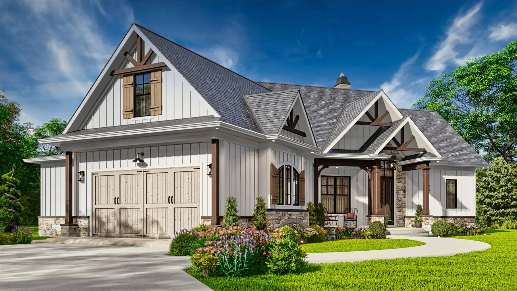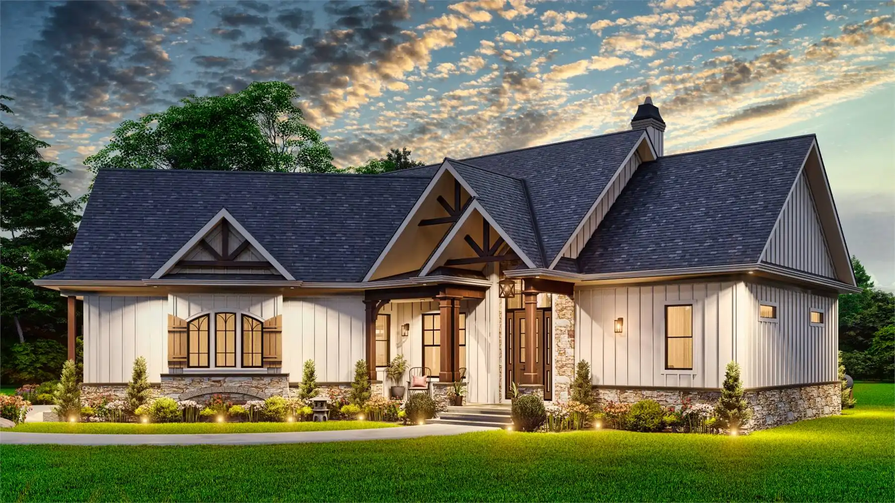 Introducing House Plan 9354, a modern farmhouse that perfectly balances charm and functionality. This inviting design offers 1,759 square feet of living space, featuring three bedrooms and two baths. The open floor plan is highlighted by a vaulted ceiling in the great room, creating a welcoming and spacious atmosphere. The kitchen boasts a large island and a cozy breakfast nook, while the primary bedroom on the main floor adds convenience. Enjoy outdoor living with covered front and rear porches, making House Plan 9354 an ideal blend of style and comfort.