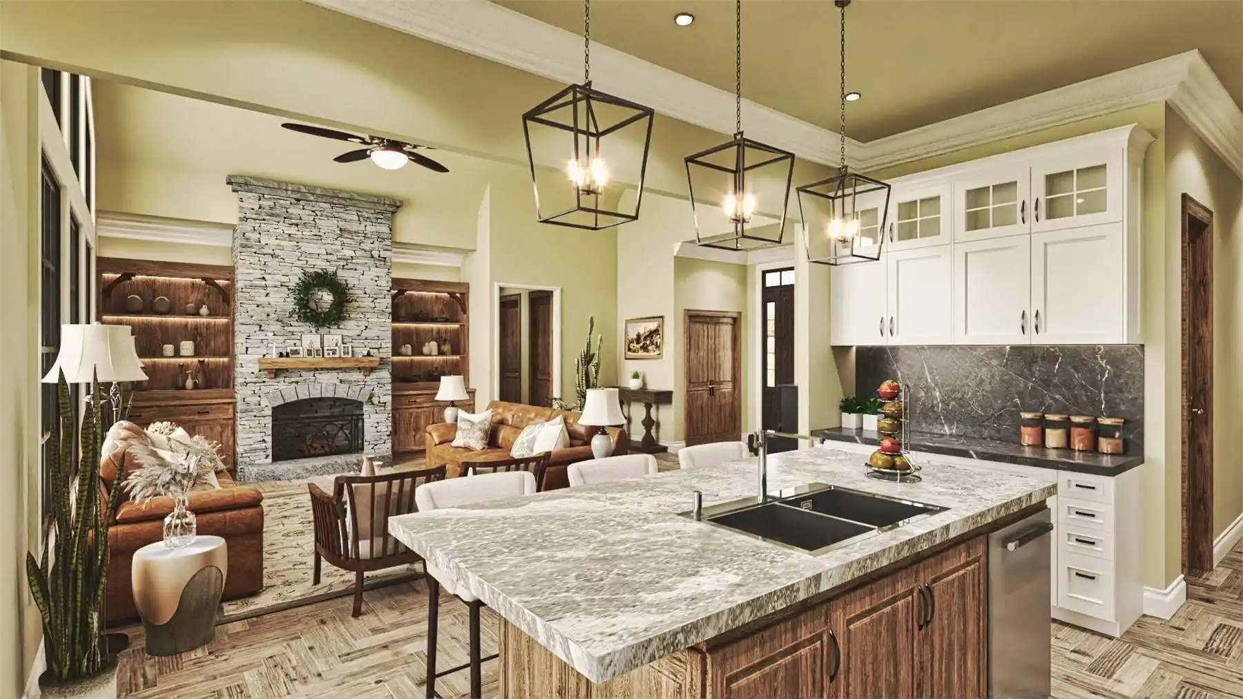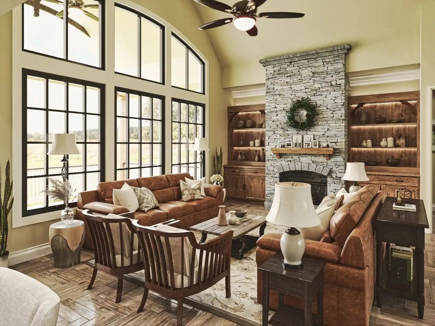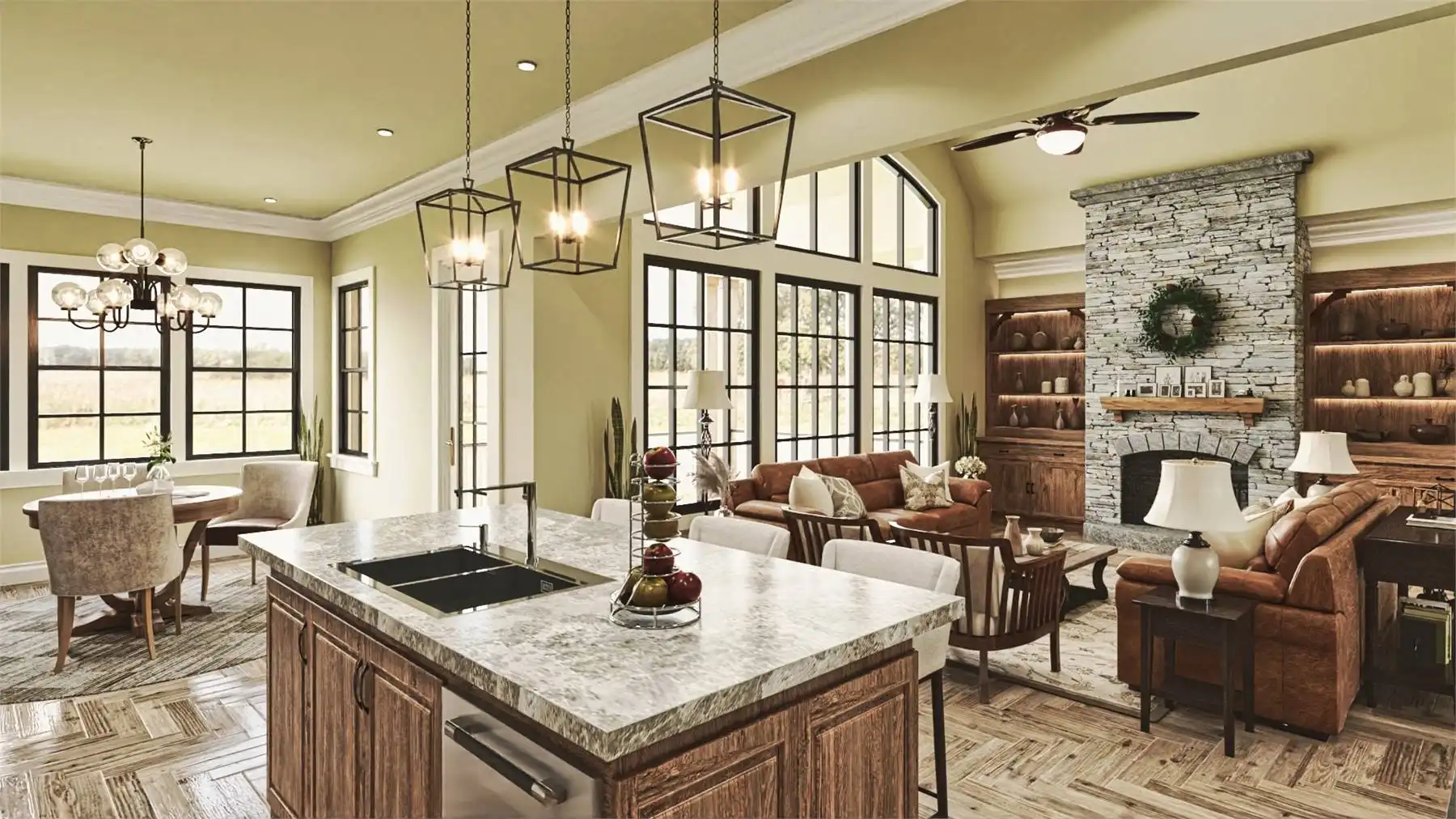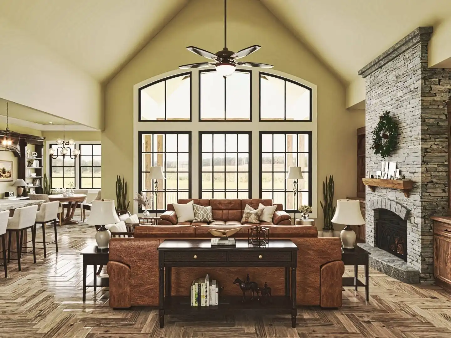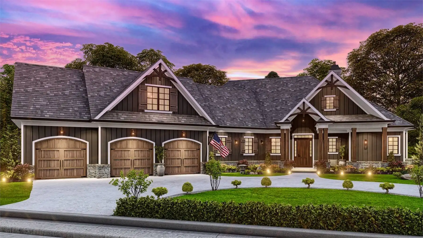 Welcome to House Plan 9356, a charming Craftsman home that perfectly balances elegance and functionality. This 3-bedroom, 2,243 square-foot home features classic Craftsman details like board and batten siding and timber accents, with a welcoming front porch. Inside, the spacious great room flows into the dining area and gourmet kitchen, which includes a large island, breakfast nook, and walk-in pantry, ideal for everyday living and entertaining. The main floor has a split bedroom design with a serene primary suite, luxurious en-suite bathroom, and large walk-in closet. Two additional bedrooms offer ample space for family or guests. There's also a versatile room that can serve as a formal dining room or home office. Optional finished basement and bonus room provide extra living space for a media room, home gym, or guest suite. Outdoor living is enhanced by a covered porch extending into the backyard, perfect for relaxation and gatherings.