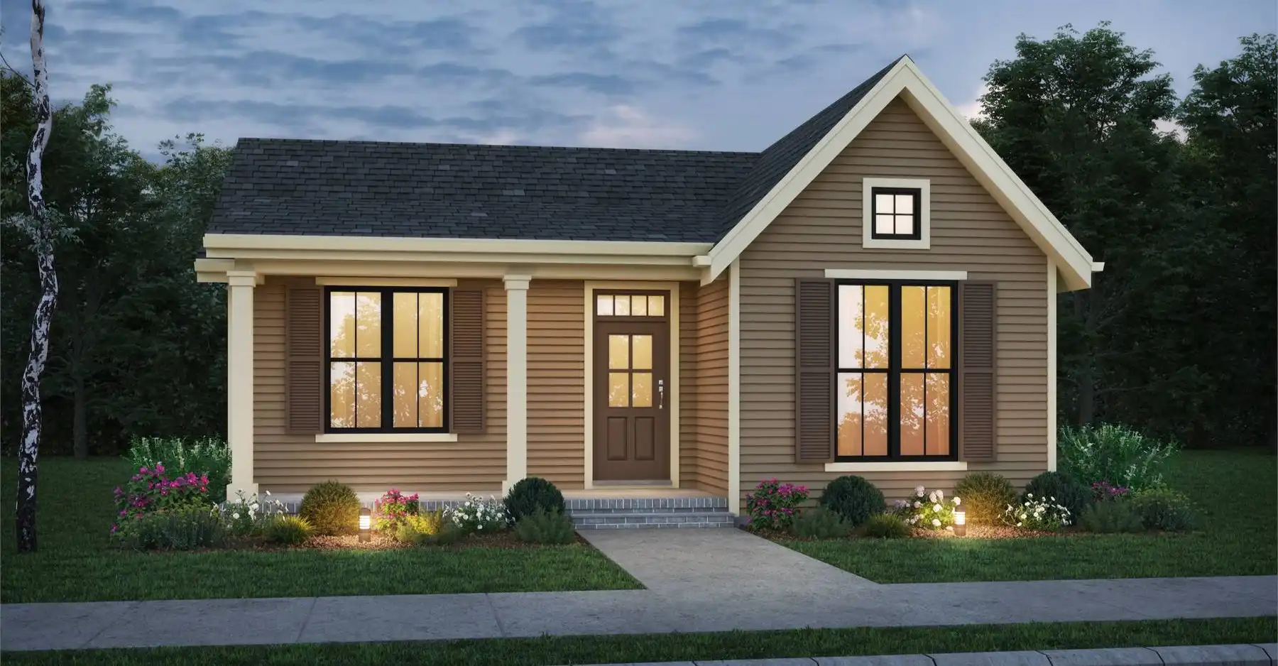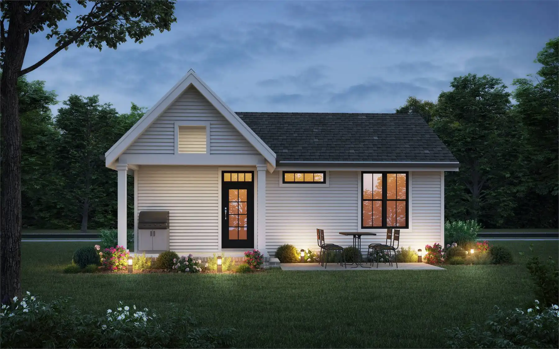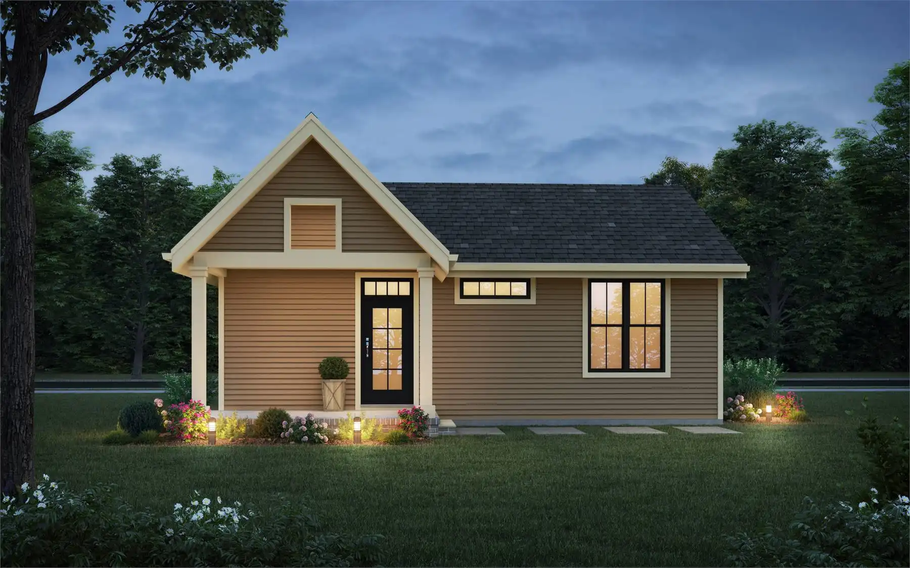 Step into our delightful country cottage, where affordability meets elegance. This 891 square foot abode provides a cozy living space with two inviting bedrooms, perfect for a small family or a tranquil getaway. The spacious, open-concept living area features built-in cabinetry, offering both style and practicality. The well-designed bathroom is centrally located for ease of use. Enjoy the serene ambiance of the rear vaulted porch, an ideal spot for unwinding or hosting friends. Combining charm with functionality, this country cottage is designed for those who appreciate comfort and thoughtful design in their home.