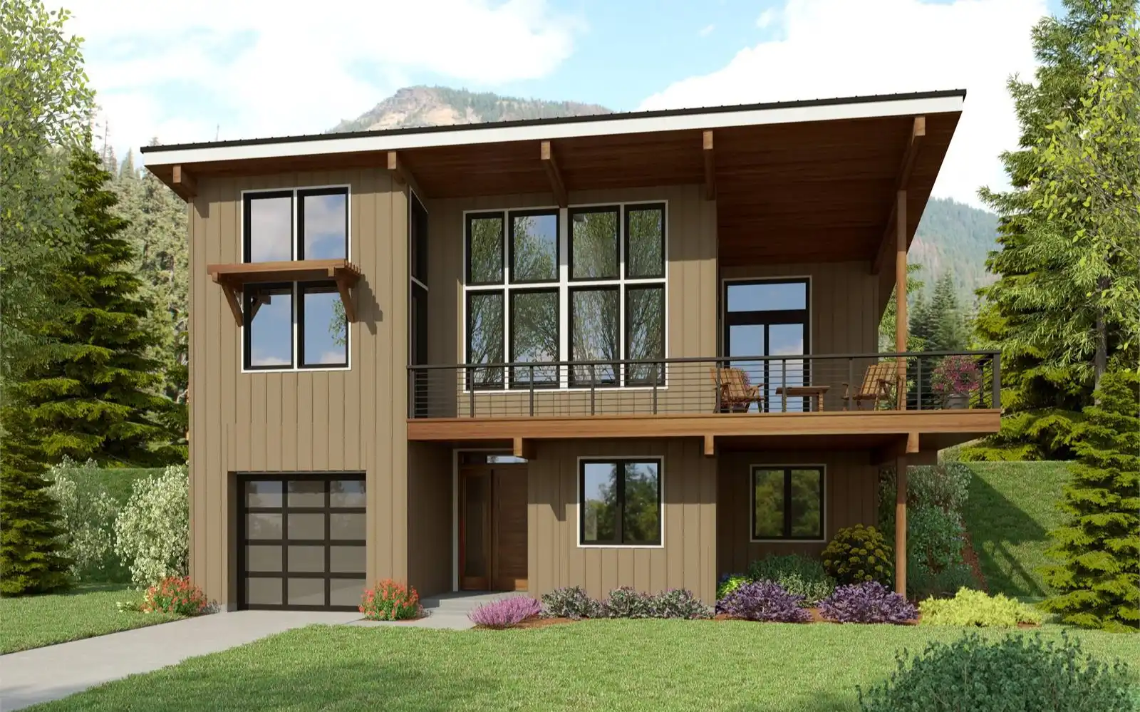 Discover the allure of mountain living with this beautiful 3-bedroom, 2.5-bathroom home. Offering 1,707 square feet of cozy living space, this house includes a 376-square-foot L-shaped porch that provides breathtaking views of the landscape. Designed for an up-sloping lot, the lower level features two generously sized bedrooms, a practical laundry room, and a 407-square-foot garage for one car.