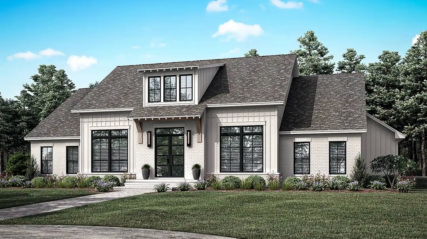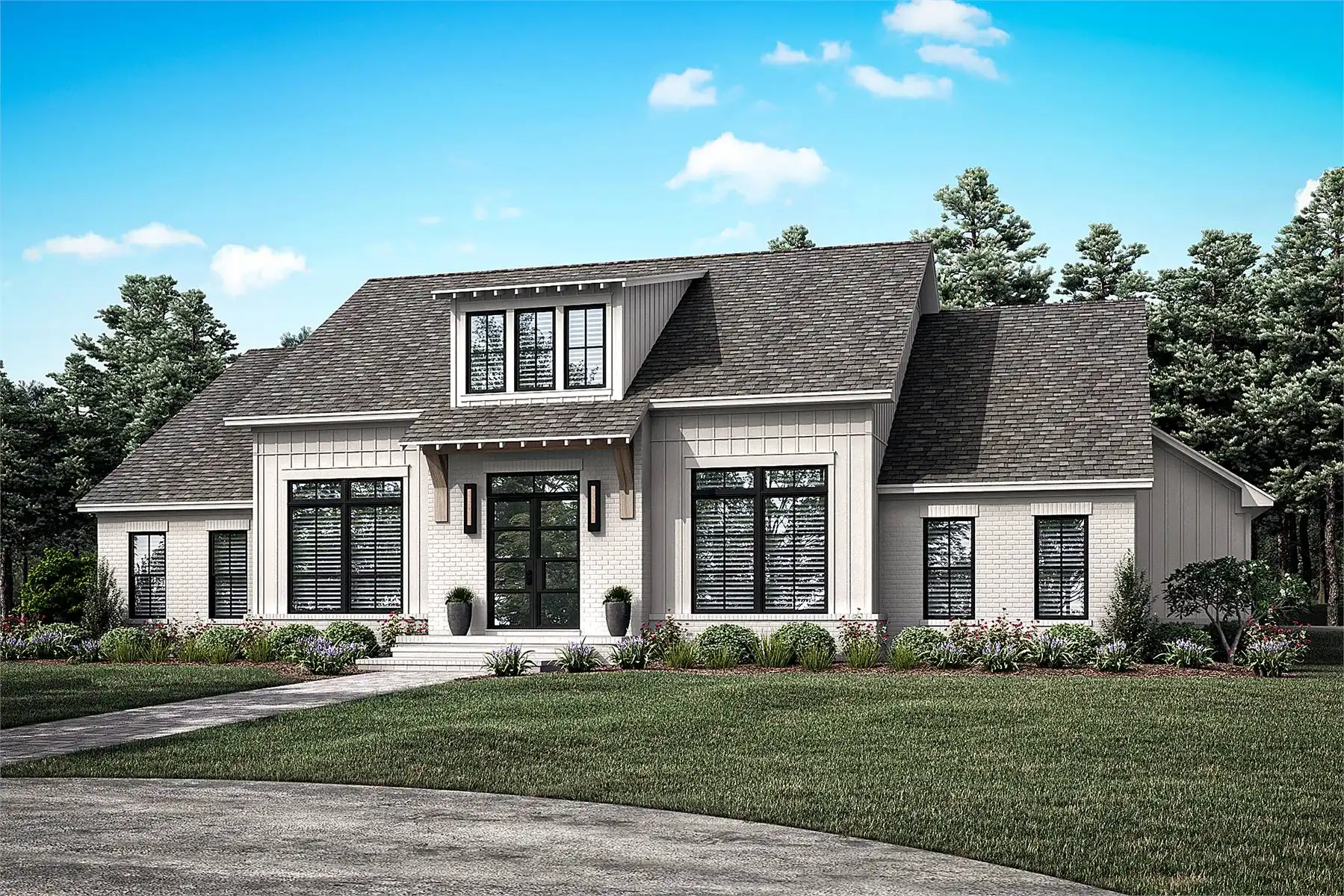 Stop and take a look at House Plan 9420 if you're looking for a wonderful one-story country home! This lovely design offers 2,780 square feet behind its symmetrical facade. The island kitchen is open to the great room while there's formal dining beside the foyer. Four bedrooms and three-and-a-half baths are split across this, with a private five-piece primary suite with dual walk-in closets on one side. There's another suite and two secondary bedrooms that share a hall bath on the other. The three-car garage is located in back while there's a bonus over the front of the main floor, so there's plenty of room to make your own!