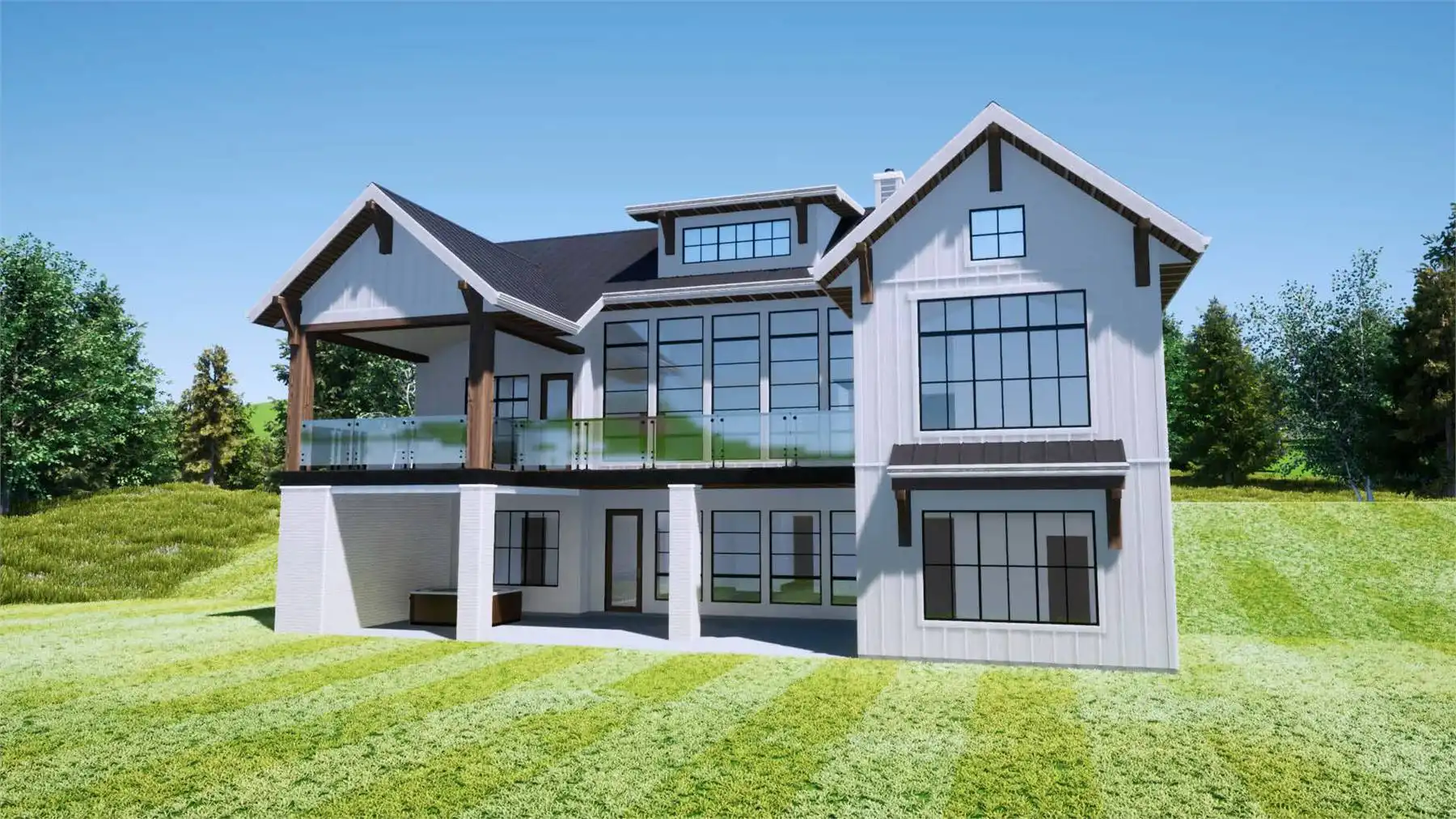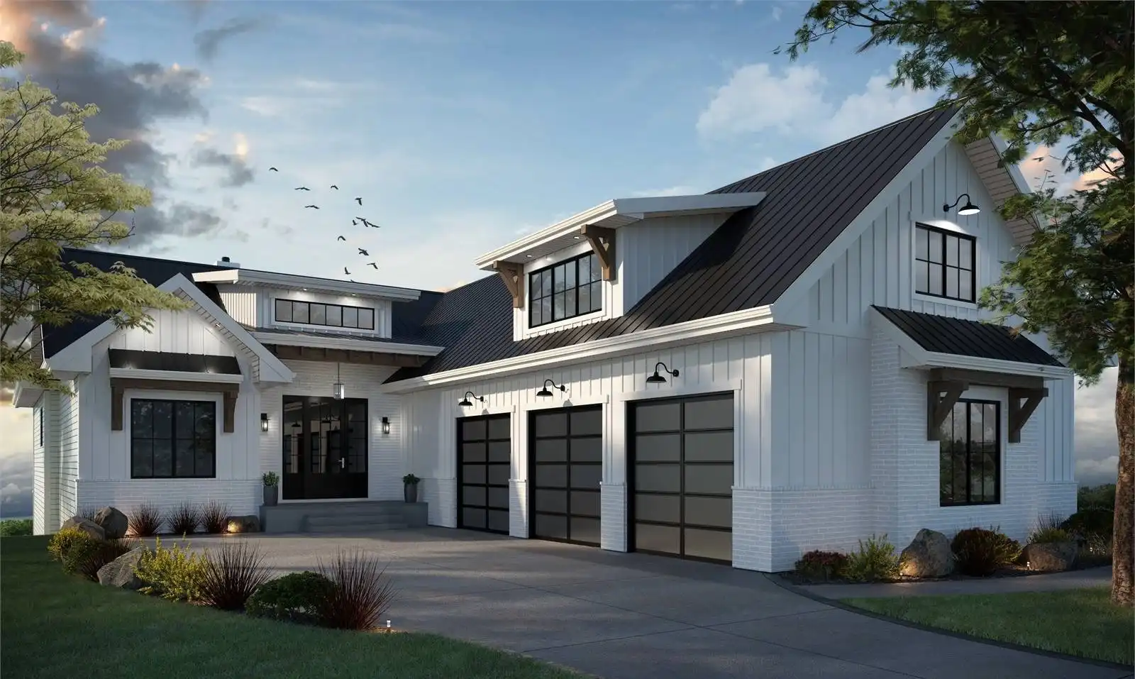 House Plan 9423 is an amazing lake house with so much to love! The layout places the three-car garage in front with courtyard entry to set the interior back from the street. The main level offers 2,209 square feet with two bedrooms and two bathrooms. The open-concept great room is spacious and has a vaulted ceiling over the dining and living areas while the U-shaped island kitchen has a flat ceiling above. The bedrooms are grouped in one hallway on the side, with the vaulted five-piece primary suite enjoying rear views. There's also a deck in back to expand your functional square footage into the fresh air. If you have a sloping lot and could use more space, just look to the basement that adds two bedrooms, a bunk room, three bathrooms, and more common space. This design packs a few surprises like ample storage and perks for pet parents, so make sure to look at the floor plans!
