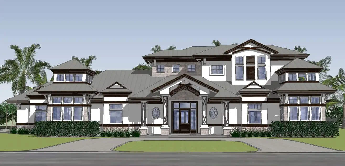 Stop and take a look at House Plan 9431 if you're in the market for a luxurious lake house! With 4,395 square feet, five bedrooms, and six, and-a-half bathrooms across two stories, this home definitely stands out from the crowd. It also has a three-car garage on the side to preserve its curb appeal. Inside, the main level features the living areas, including the great room, the gorgeous eat-in kitchen with banquette seating, and the formal dining with a butler's pantry. You can also easily extend out into the outdoors thanks to the lanai with summer kitchen, which is great for hosting! The primary suite is located on the main level along with a smaller guest suite that has its own entrance. There's also a study and a media room. The final three bedrooms are located up the stairs--or you can take the elevator--around a loft. Talk about a great setup for the whole family!
