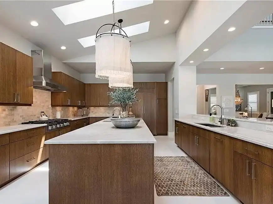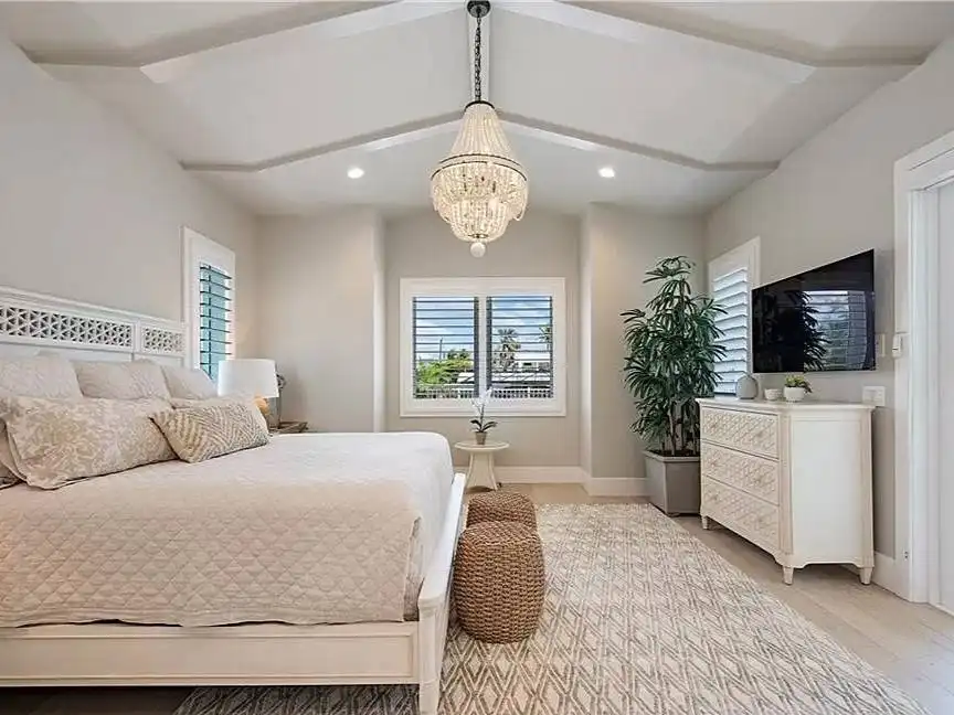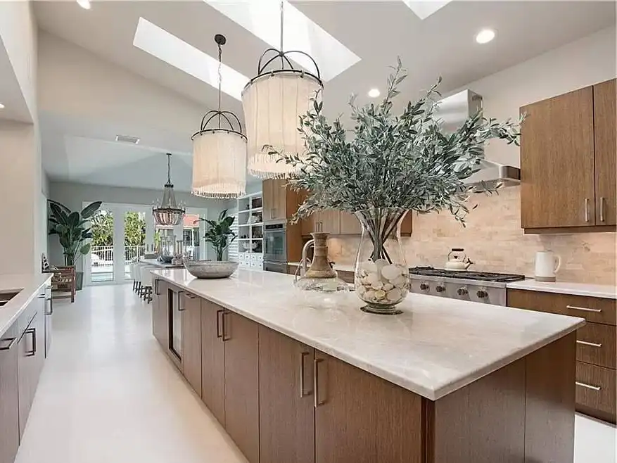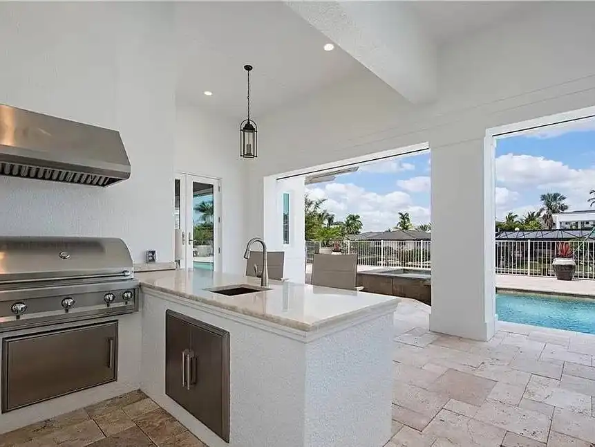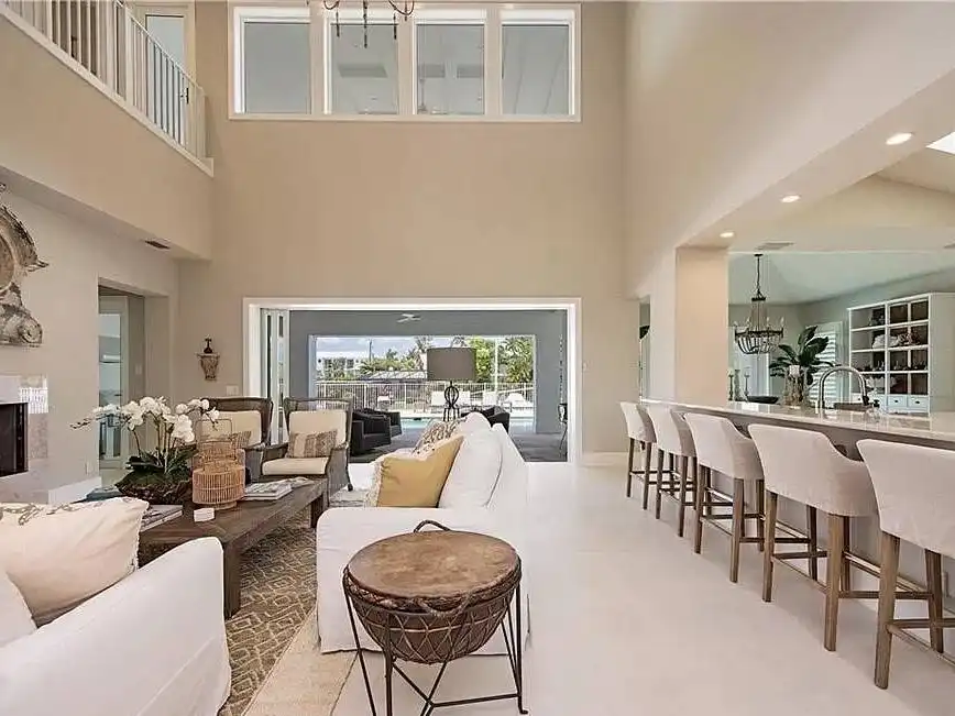 House Plan 9433 would make an amazing choice for a beach or other natural location thanks to its breezy design! This 4,335-square-foot home boasts four bedrooms and four-and-a-half bathrooms across two stories. The primary suite is a sight to behold with its lavish bathroom, and it's conveniently located on the main level while the other three bedroom suites are placed upstairs. Look closely--they all connect to balconies! The common areas in this home include the two-story great room, family room, dining room, study, and a superb double-island kitchen. Pair that with the outdoor kitchen on the back porch and you're all set for every kind of hosting!