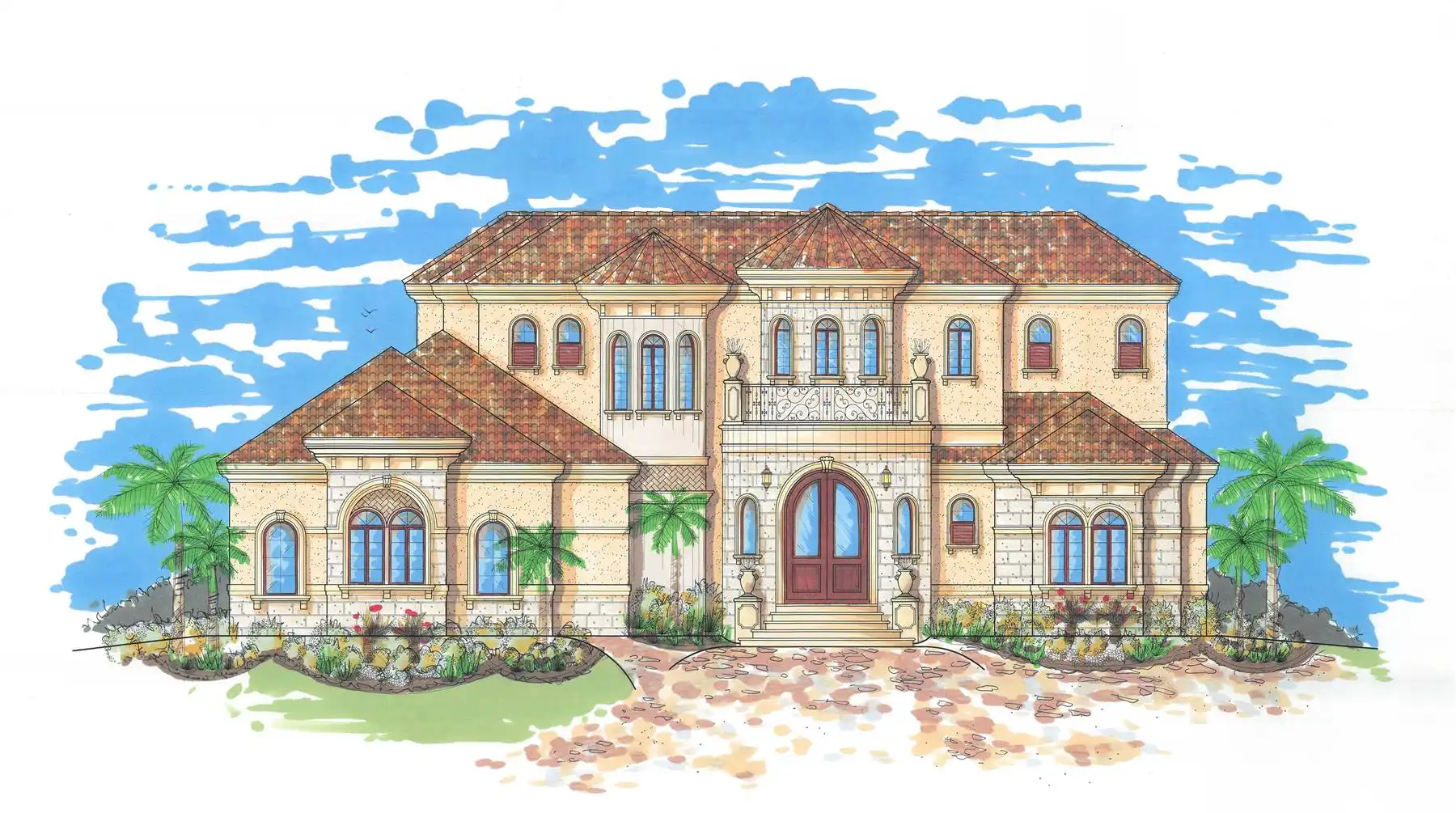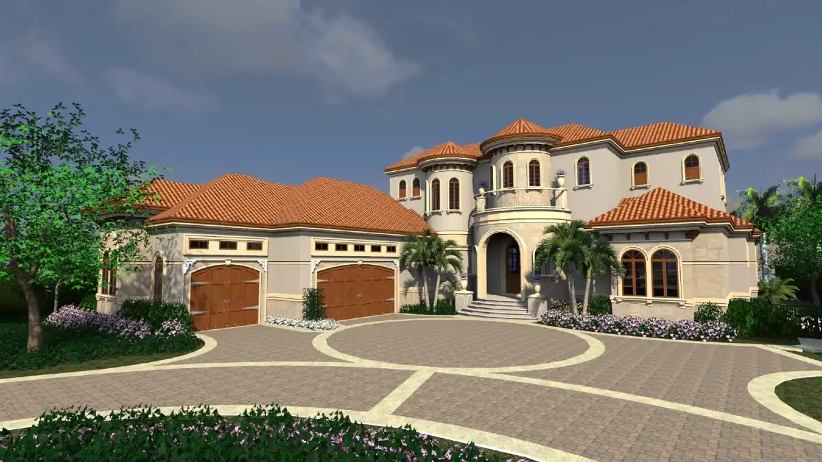 Need a grand Mediterranean home? See what House Plan 9441 has to offer in its 5,126 square feet across two stories! The unique main level features formal dining, a two-story living room, and an informal family room. The central kitchen has tons of room to work between the U-shaped countertop and two islands, plus there's a bar for even more functionality. There are two suites on this floor--the luxurious primary as well as a smaller guest suite--and ample outdoor space to enjoy when the weather is nice. Two more suites, a study with its own bath, and a lounge round out the second level. You'll also appreciate the outdoor living up here!