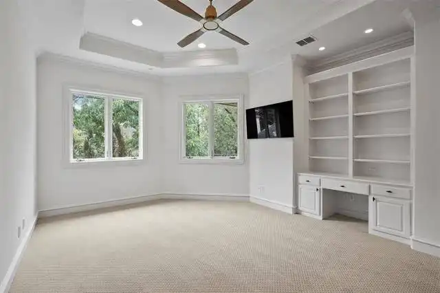 of the upper two story foyer are two family bedrooms, each with trey ceilings, private baths, walk-