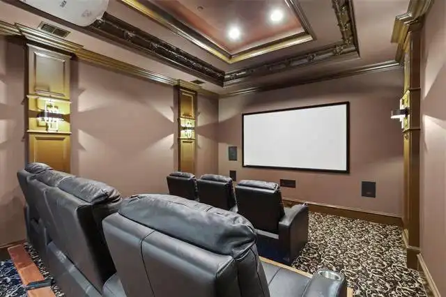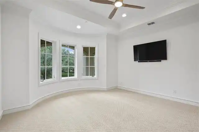 powder room, game room and media room share space with these four bedrooms. The media room has a bay