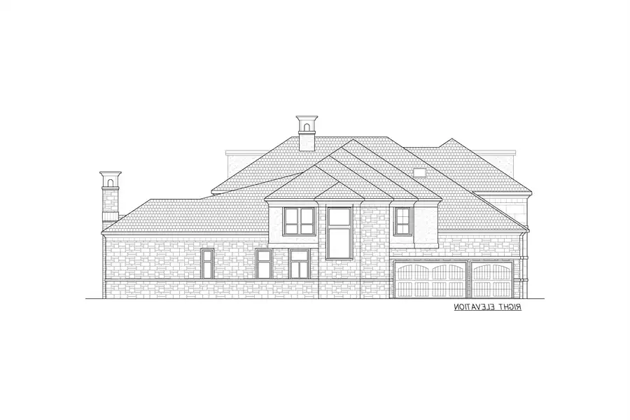 the side entry, three-car garage, completing this luxury five bedroom elegant luxury home plan.