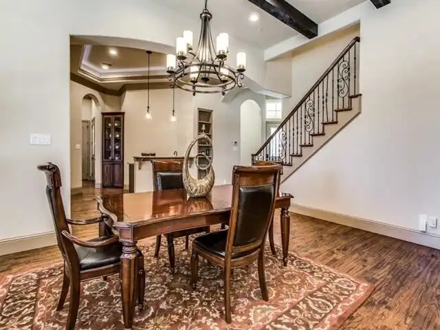 to a the private balconies on both the rear and front. Beyond the living room, the formal dining sits