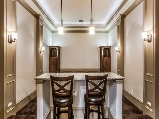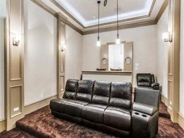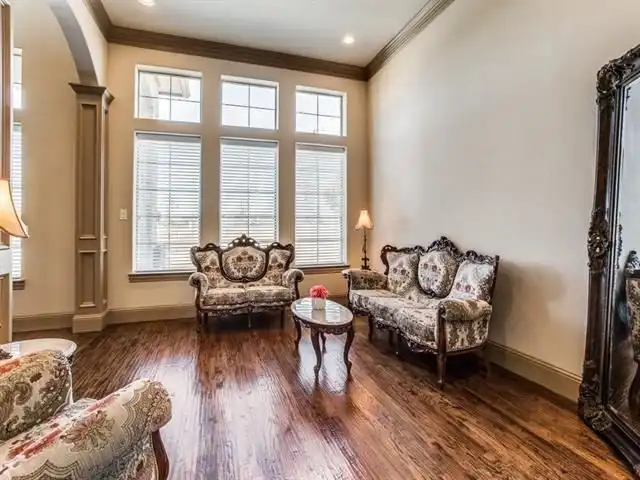 the grand foyer. Just off the foyer is a quiet study and a formal living room. The study offers access
