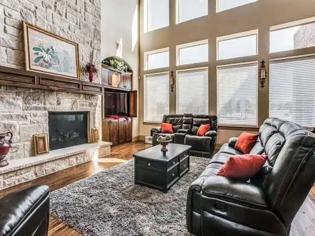 bar. The family room offers a fireplace, built-ins, and views to the upper hall. The master bedroom