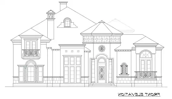 This Mediterranean home plan is elaborate and luxurious, with an ornamental exterior that features