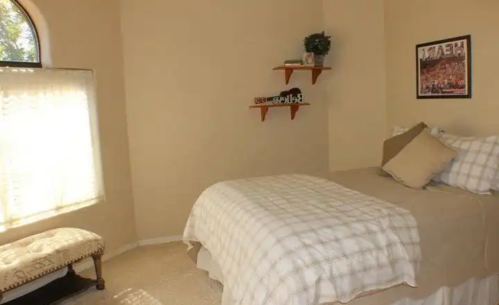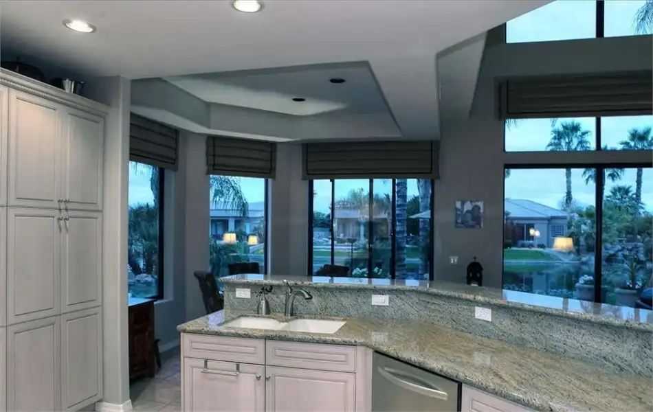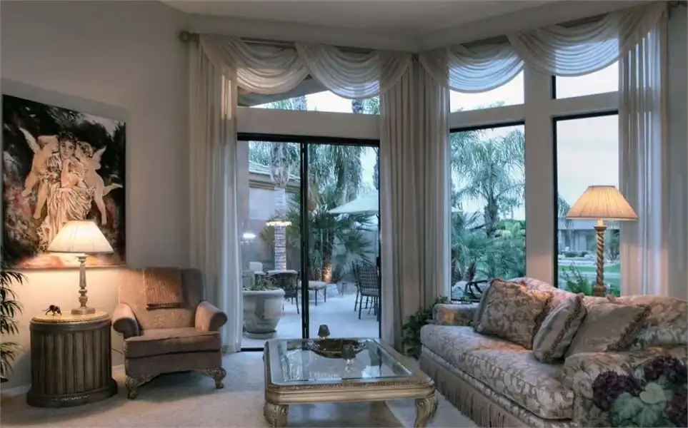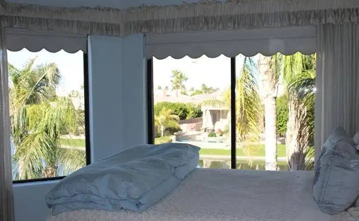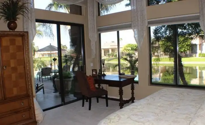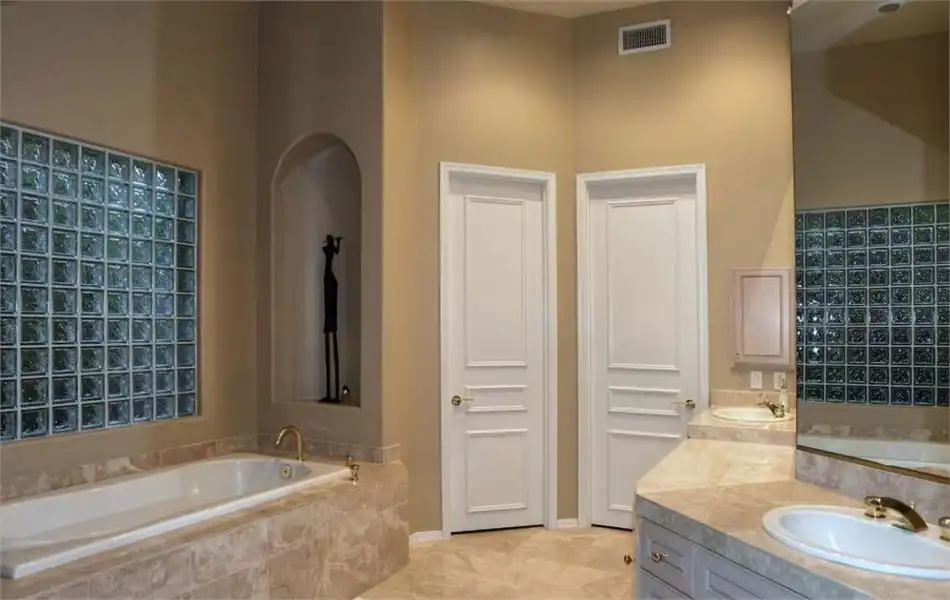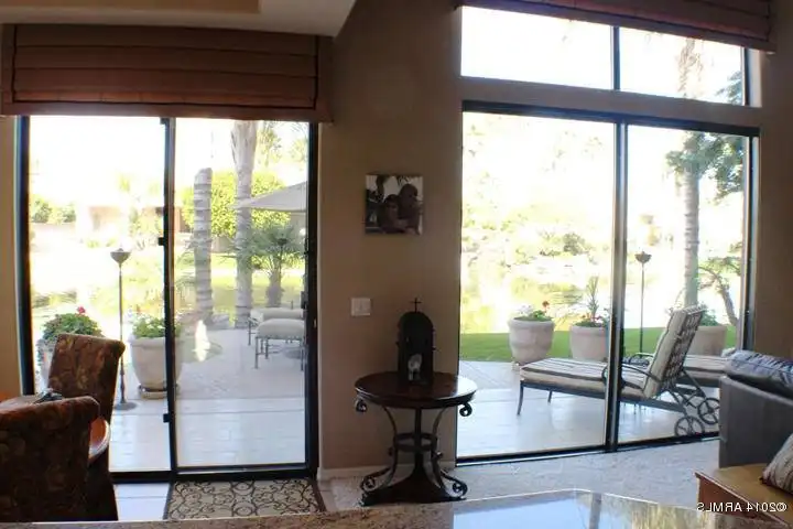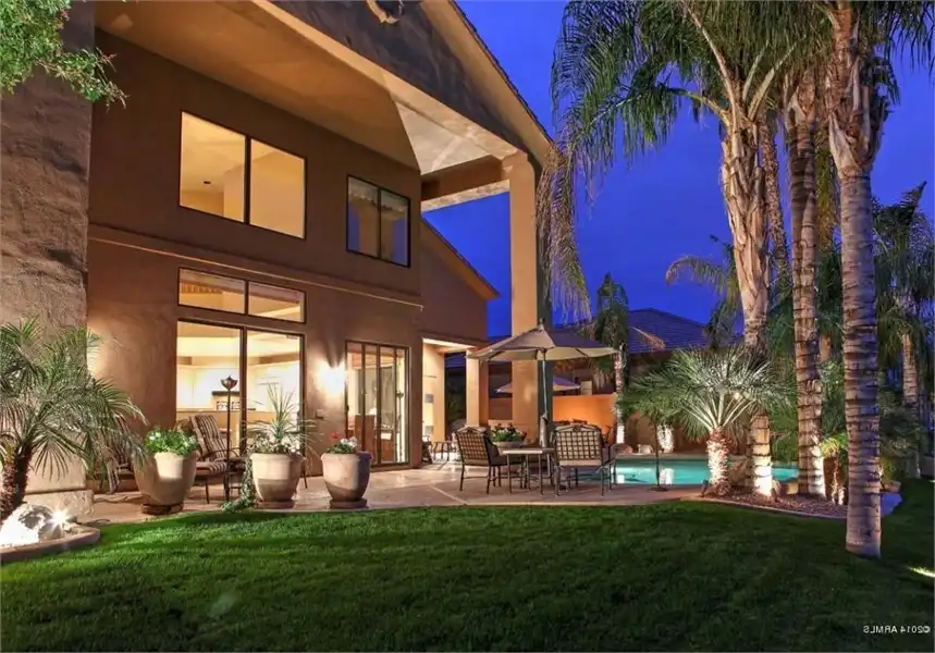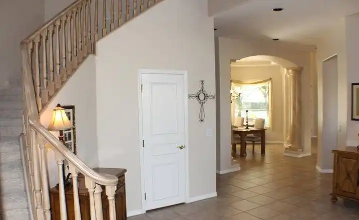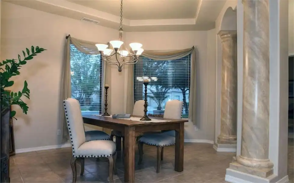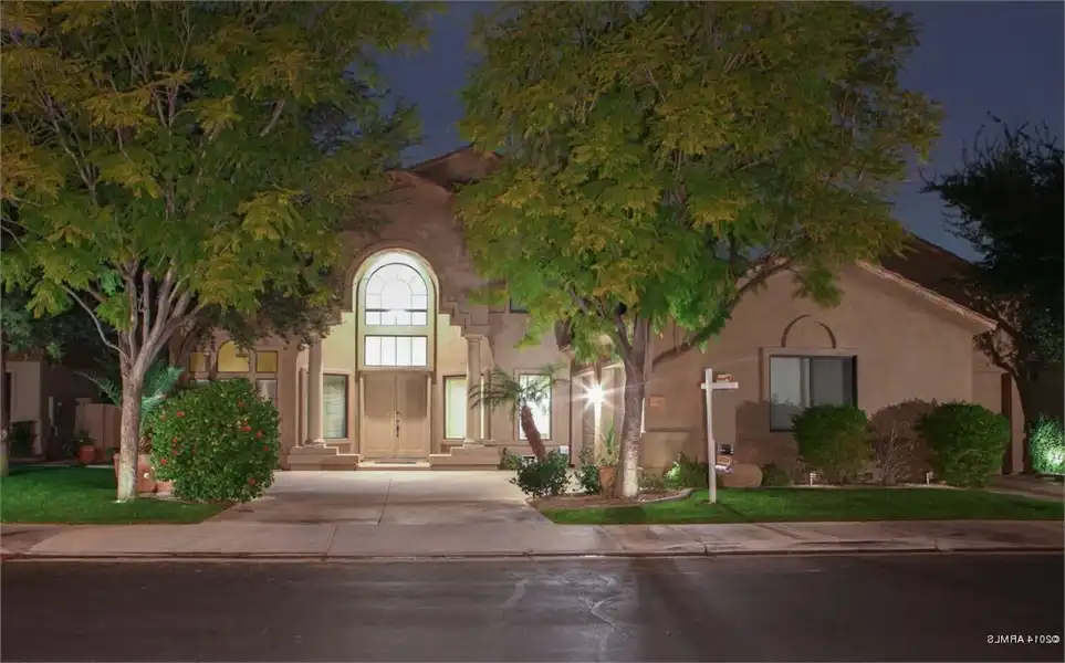 entryway is framed by four large pillars, lots of windows and a beautiful stucco exterior.