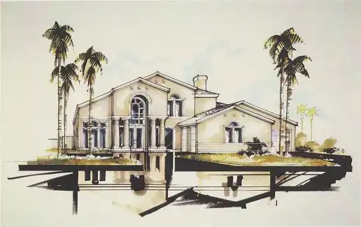 Mediterranean home comes with everything you could want in a narrow lot plan. The two-story