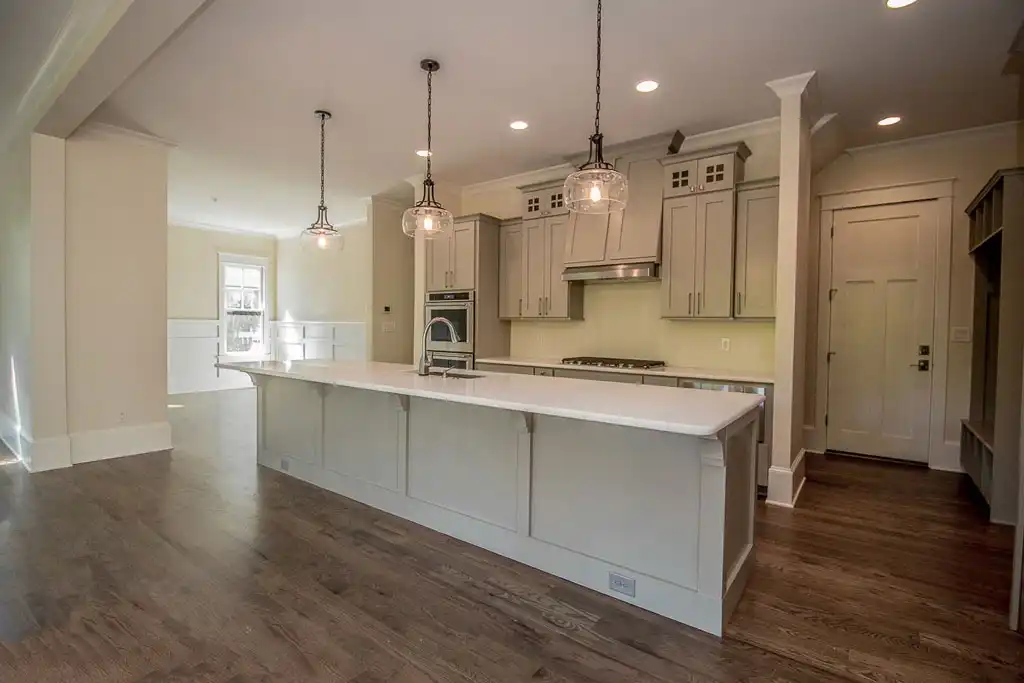 This lovely cottage design features three bedrooms upstairs, plus a guest room on the main level. Everyone will feel welcome in the spacious great room, with its crackling fireplace. The family chef will appreciate the island kitchen, with its oversized pantry. After a meal in the casual dining room, step out to the screened porch for dessert and fresh air. The two-car garage includes a generous storage area.