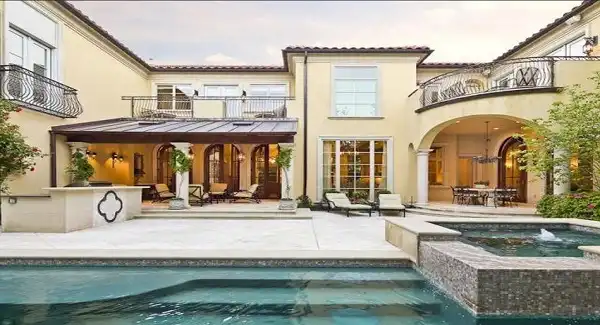 Mediterranean style house plan looks like something straight out of Beverly hills. In a home fit for a movie star, this plan offers an astounding 7,700 square feet as well as 5 bedrooms and 5.5 bathrooms. This expansive dwelling not only offers extraordinary spaces, but it also has the versatility and flexibility to fit many different lifestyles. For the productive workaholics, the first floor study and its beautiful bay window are perfect. For the chef or entertainer, the kitchen and bar area open right in to the spacious den area. And for the family-centered people, there is a large family room and game room on the first and second floors respectively. All of this home centers around the remarkable views of the courtyard area that is created by the shape of the floor plan. Between multiple balconies and private verandas, this home is made to amaze. Perhaps the most amazing of it all is this plan’s master suite. With a sizable room and his and her separate closets, the master suite is highlighted by stunning his and hers bathrooms with hers having a massive circular soaking tub, fit for a queen.