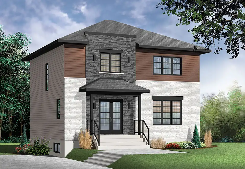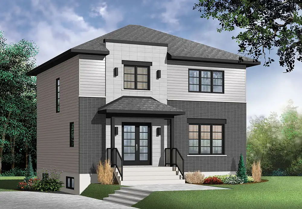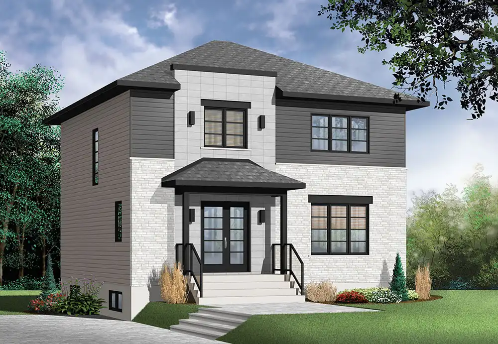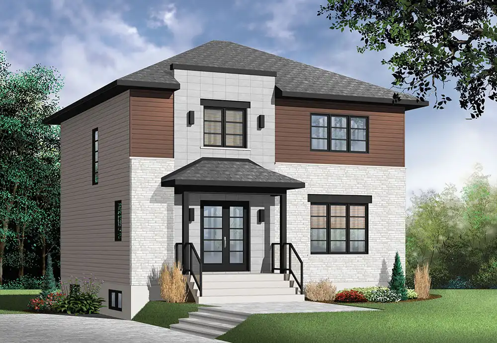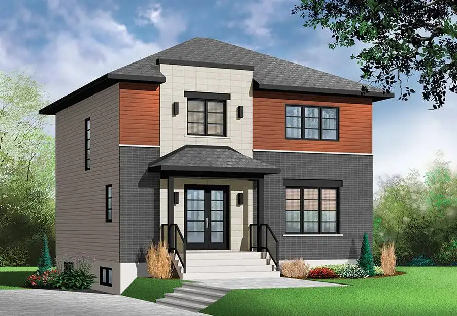 Looking for an affordable new home with Modern flair? Look no further! Here's our very popular Altair house plan, offering three good size bedrooms, one full family bathroom + half bath. On main floor, there is an open dining and living concept with a 2-sided fireplace. A large kitchen is opened to the dining room and offers lots of natural lights through triple patio doors.