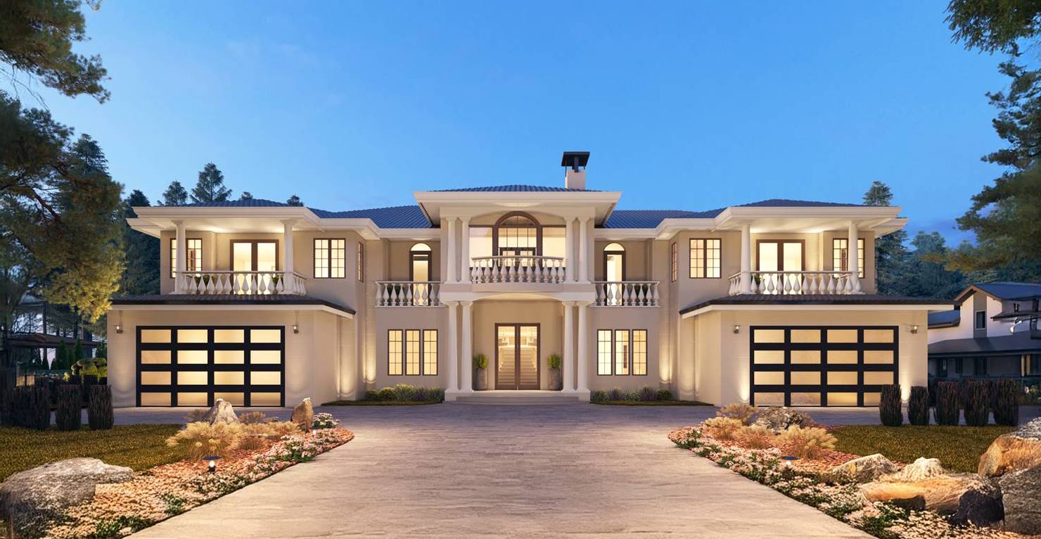 House Plan 9552 delivers estate-style living with layered spaces designed for comfort, entertaining, and long-term flexibility. The exterior showcases balanced garage wings and refined architectural presence. Inside, the main level offers generous gathering areas, a dedicated office, and two private bedroom suites. The gourmet kitchen anchors the home with an oversized prep island, pantry storage, and a secondary kitchenette complete with additional appliances. A central grand staircase leads to the upper level, where five bedroom suites and the primary suite are joined by two laundry rooms and a large playroom. Downstairs, the lower level is built for relaxation and independence, featuring a recreation room with wet bar, a fitness space with sauna, and a fully equipped two-bedroom ADU with private outdoor access.