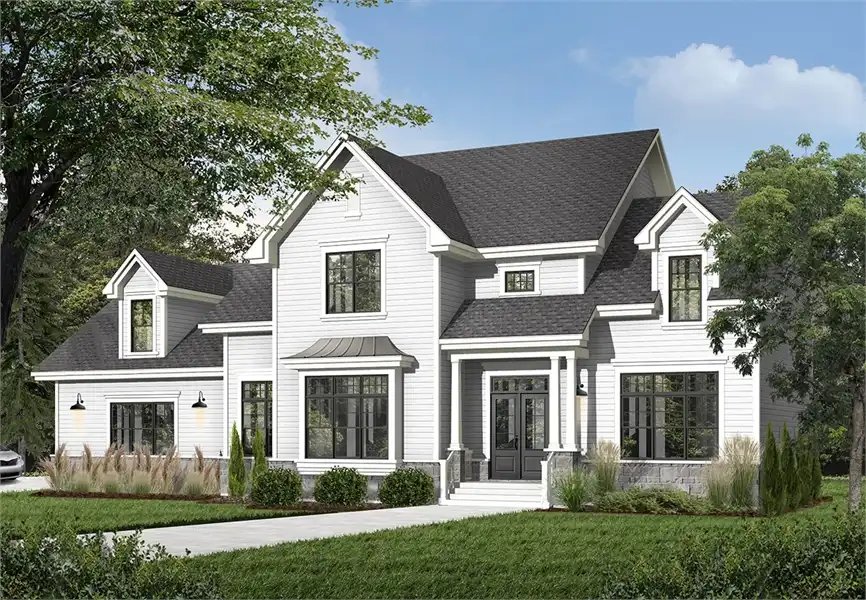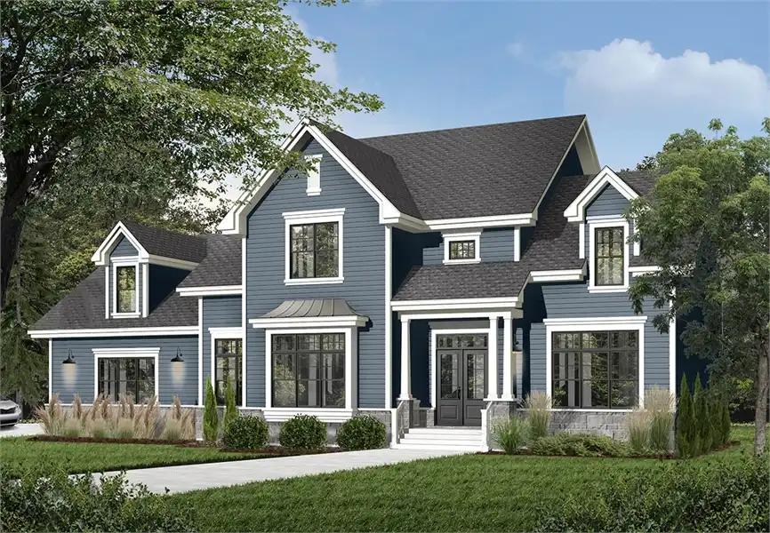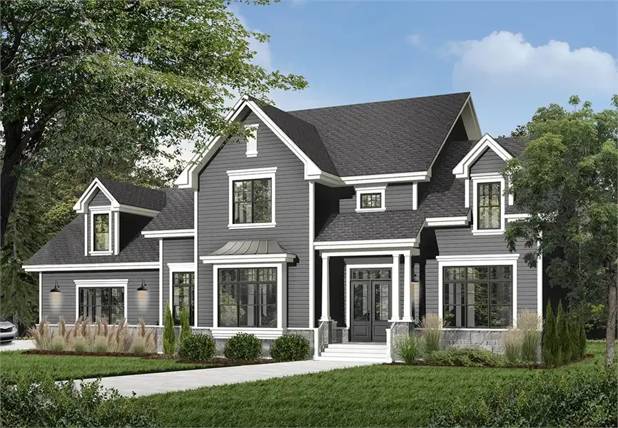 Large and spacious family cottage house plan with 4 master suites. Beautiful corner lot cottage house plan. Three- car garage with three 10' by 9' doors facilitating access for SUVs. Main level ceiling at 11' and 9' on second level. Ceiling drops in kitchen and dining rooms. Superb master suite with fireplace. Large family room, sunken 15in, with fireplace, built-in furniture and access to rear screened-in covered porch, kitchen with island/lunch counter. Large home office that can easily welcome two employees. Three large bedrooms on the second floor with its own private bathroom. Mezzanine over family room. Large bonus space over the garage.