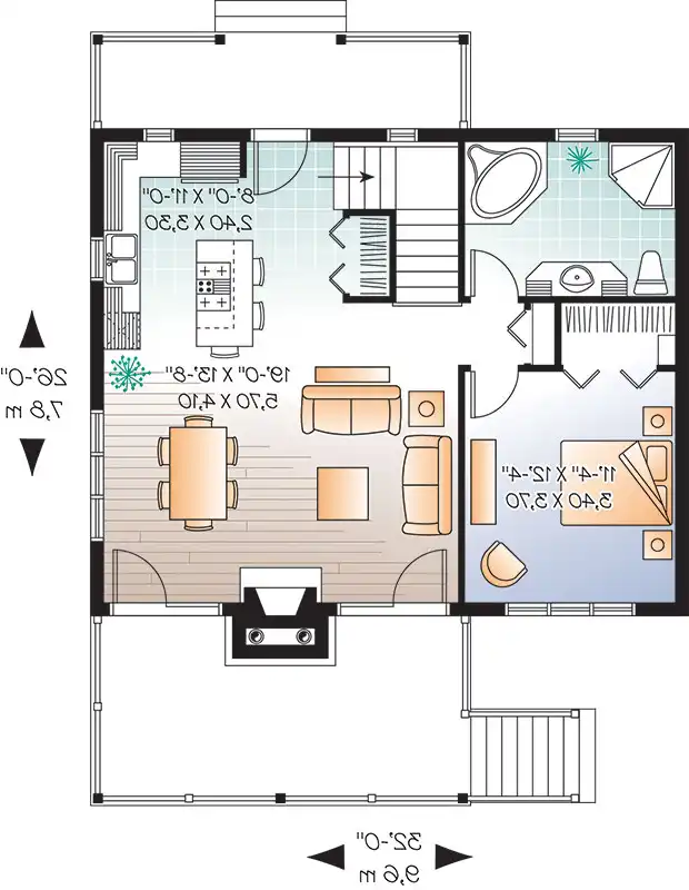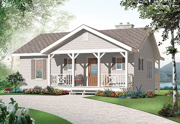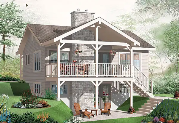 This one-story lake home is more like a two-story, because it has finished rooms in the walkout basement. Receive guests on the nostalgic front porch, and then show them to the great room for good conversation. Step out to the deck for a bit of fresh air before dinner is served. Note the extra seating space at the kitchen's island. If you only see one bedroom on the main level, look downstairs for the other two, along with the family room.