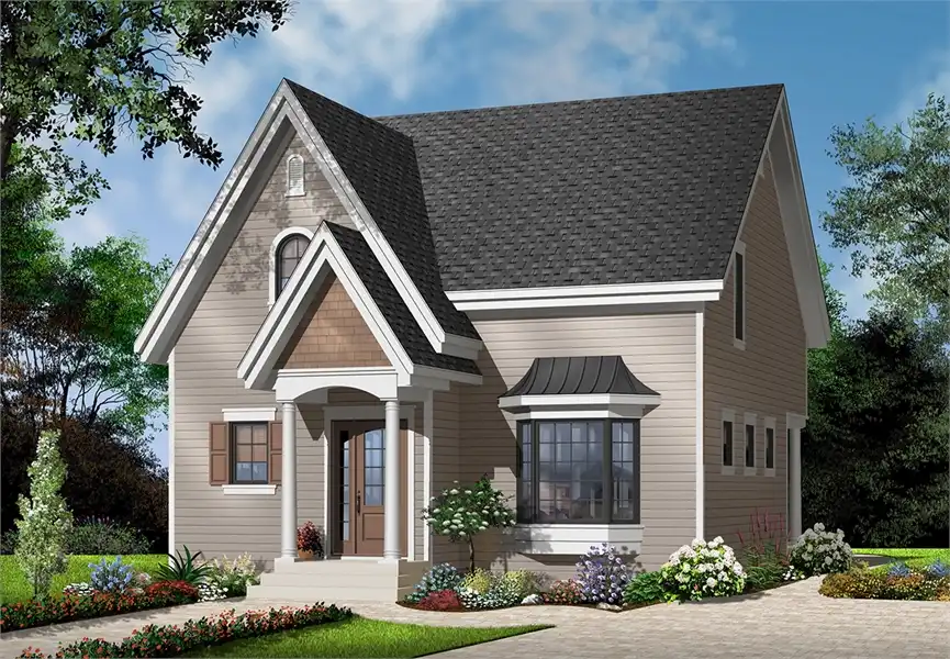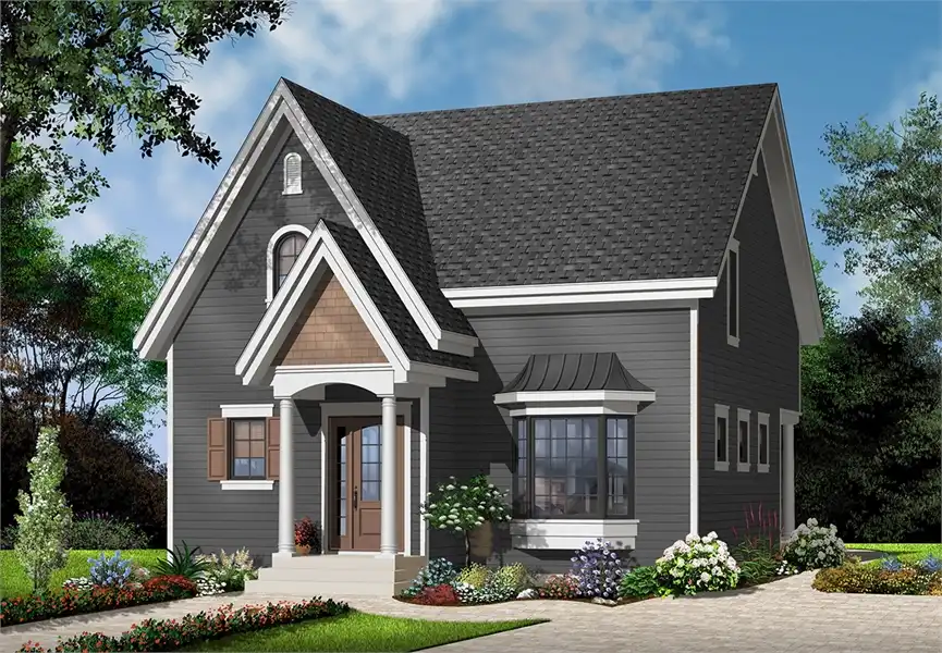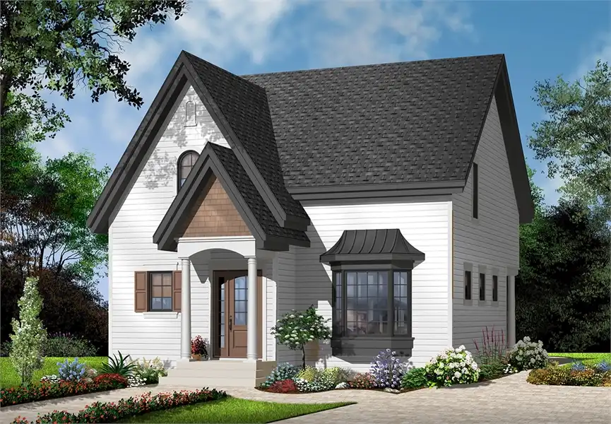 Careful details lend a Victorian nostalgia to the façade of this three-bedroom design. Inside, the oversized great room is a perfect place to chat with guests and reminisce about the old days. The eat-in kitchen is spacious and inviting. The upper floor hosts three bedrooms and a luxurious bath with a separate tub and shower.