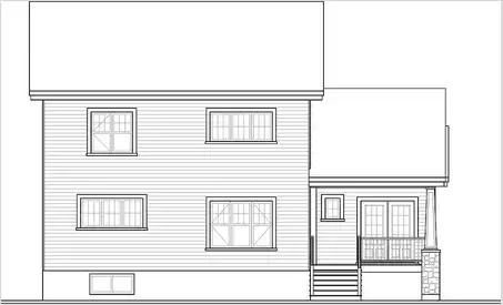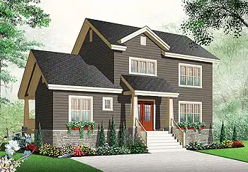 Gables, stone and siding combine to make a charming façade for this three-bedroom cottage design. Beyond French doors, a handy coat closet accepts your visitors' jackets. The gourmet kitchen serves the versatile dining room with ease. How about stepping out to the rear porch for dessert and coffee? A laundry closet and a computer center are nice features. On the upper floor, a large bath flaunts a separate tub and shower. Three bedrooms are situated for privacy.