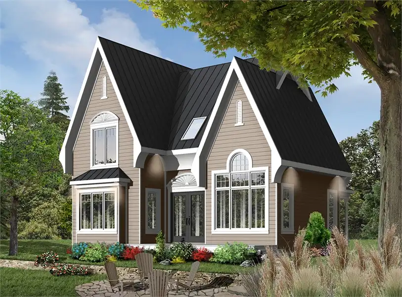 Beautiful windows and ornate finishes make this home a great option as a lake or mountain home, capable of being a vacation or year-round dwelling. With 1,498 square feet, 3 bedrooms, and 2 bathrooms, this 2-story plan has ample space and countless ways to enhance your enjoyment of your surroundings. The front door opens on to the foyer and its private air-lock design. The space then gives way to the living room and sitting area, which is bathed in natural light and stunning views, thanks to the massive windows on every wall. Access to the rear porch and outdoor living space is found via the double French doors off of the living room. Directly attached is an eat-in kitchen with plenty of space, as well as a bedroom and full bathroom. The second level of this home looks down on the living room below, giving the home an open and airy feel. Two more bedrooms and a shared full bathroom are also found on the second floor, as well as a secondary family room and sitting area. Gorgeous views surround this home and create a tranquil feeling from the moment that you enter.