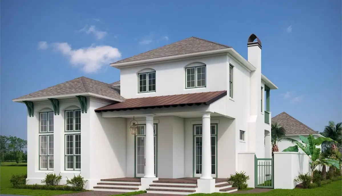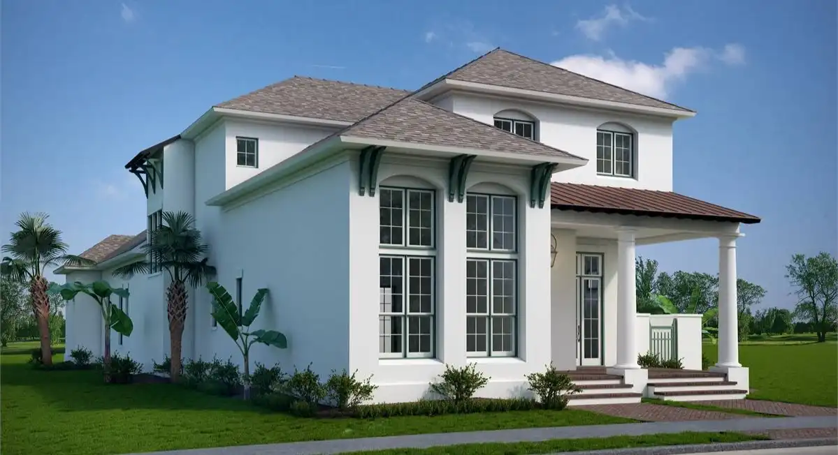 With stucco, columns and lots of windows, this two-level home has a Mediterranean feel. Guests will appreciate the elegant dining room as they feast on your famous dishes. The up-to-date kitchen could not be more open and airy. The family room hosts any gathering in comfort and style. The deluxe master suite is a relaxing haven after a busy day. The kids will enjoy their bedrooms upstairs, along with a full bath and a breezy balcony.