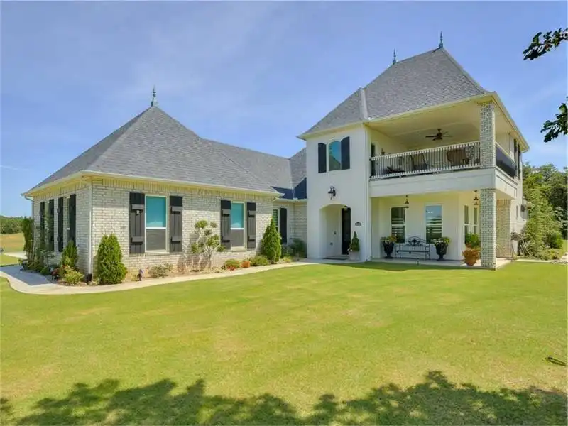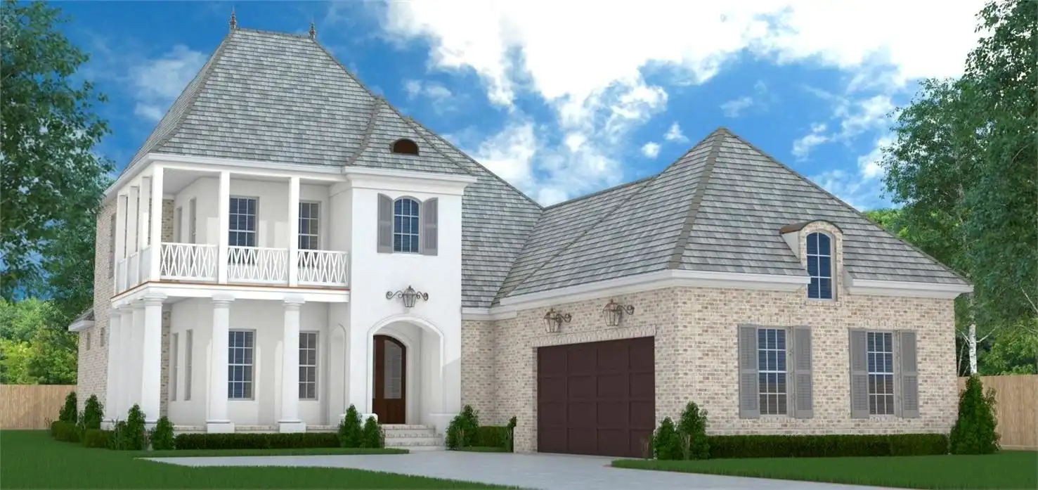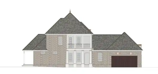 This two-story French country design will stop pedestrians on a dime! The front view is simply enchanting, with its shutters, arches and porches. Inside, the floor plan is just right for small dinner parties or large gatherings. The up-to-date kitchen includes a corner pantry. The fantastic master suite showcases a double-sized shower.
