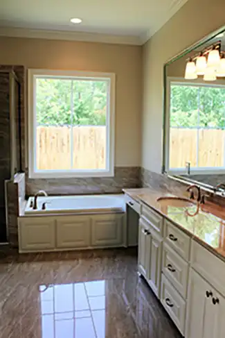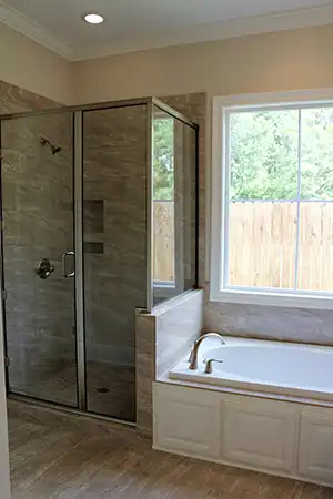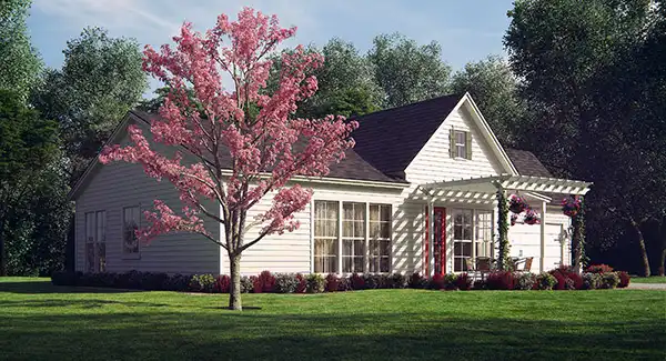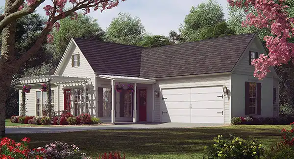 Perfect for a narrow lot, this two bedroom cottage is filled with amenities. The open living area hosts a 12' ceiling with the gas log fireplace nestled in between built-in cabinets being the focal point. The kitchen looks into the dining/living area with an large island snack bar. The arbor provides a relaxing place to enjoy the outdoors. The closet space is plentiful. A large storage closet lined with shelves is accessible from the kitchen and living space. The Master Bedroom features an enormous walk-in closet and a luxurious bath that includes dual lavatories, private commode, linen closet, makeup vanity, tub with shelves to store bathing products, and a 4' stall shower.