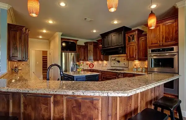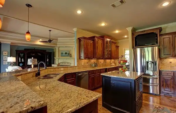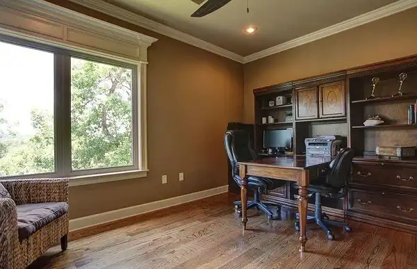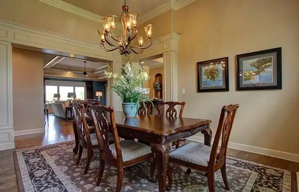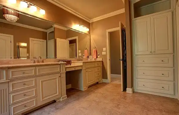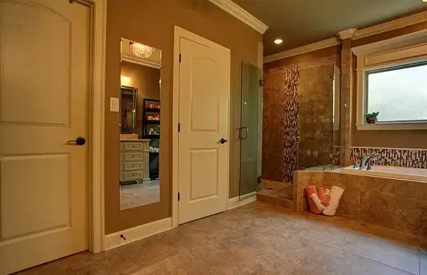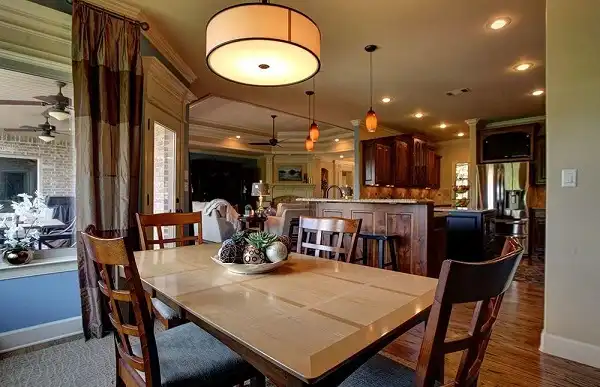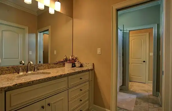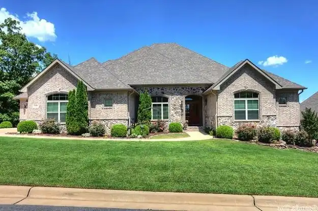 Cimarec is a ranch-style luxury house plan featuring brick and slate exterior with a one and two-car garage and a covered front porch and rear patio. The foyer is just through the double French doors, in between the family bedrooms and dining room. The kitchen, butlery, and pantry are accessible from the dining area, making serving family and guest meals an easy feat. The stair to the second floor is off the dining room with a powder room conveniently placed at the base. Access the garages and utility room from this side of the house. Down the hall is the luxurious master suite with trey ceiling and master bath boasting his and hers vanities, separate shower and garden tub, and a large wardrobe with built-ins. The wardrobe connects to the utility room, making handling laundry convenient. Centrally located is the large family room with trey ceiling and corner fireplace, with views through the wall of windows to the covered patio. The morning room and gourmet kitchen sit off the family room and offer a wide open feeling. The gourmet kitchen offers granite counter tops, modern, state-of-the-art appliances, recessed lighting, a free-standing center island, and a large curved breakfast bar that serves as a seamless separation between the kitchen, morning room and family room. Windows in the morning room offer views to the back yard and covered patio, and allow the sun to shine in and brighten your way. The left side of this elegant house plan hold the family bedrooms. At the front are two family bedrooms with large walk-in closets that share a Jack-and-Jill bathroom. Between these rooms in the hall is a large built-in desk area. Down the hall is a third family bedroom with large walk-in closet and bathroom that can access the quiet study. This room could double as a guest room or in-law suite. Access from the study to the covered patio can make this a wonderful room for the in-laws. Upstairs, a powder room shares space with the media room and completes this elegant luxury house plan.