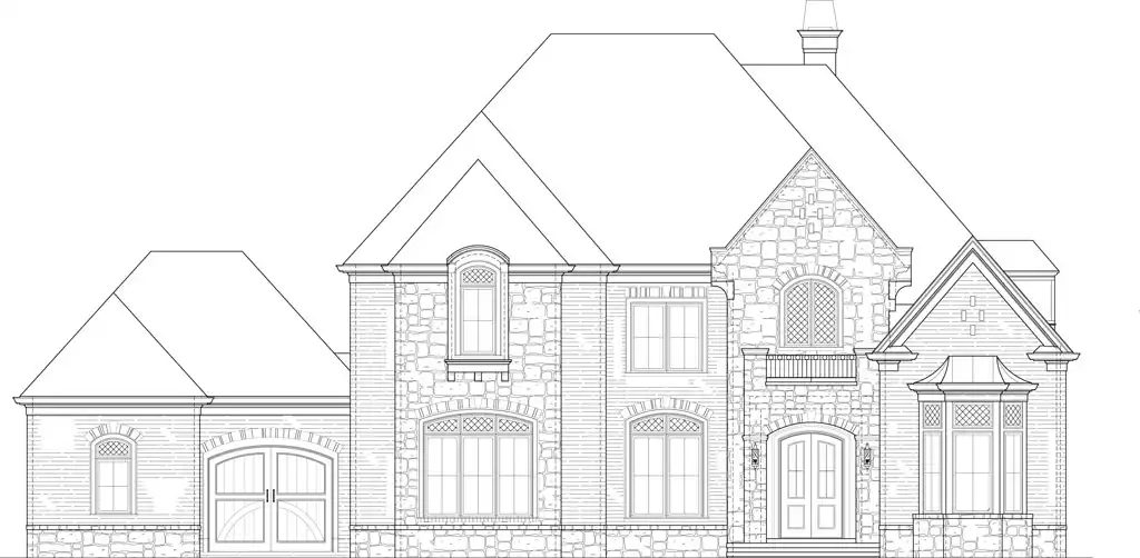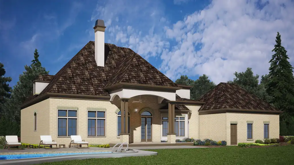 Arches, stone and brick combine to give the charm of the Old World to this four-bedroom design. Imagine welcoming guests in the foyer, and showing them to the dining room for a special feast and good conversation. The open kitchen boasts nearly everything on your checklist. The sizable great room flows to inviting porch areas for grilling or stargazing. After a busy day, soak your cares away in the master suite's garden tub. Three more bedrooms make this home fantastic for growing families.
