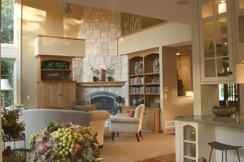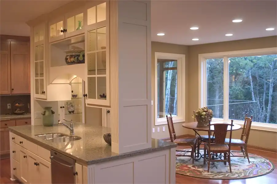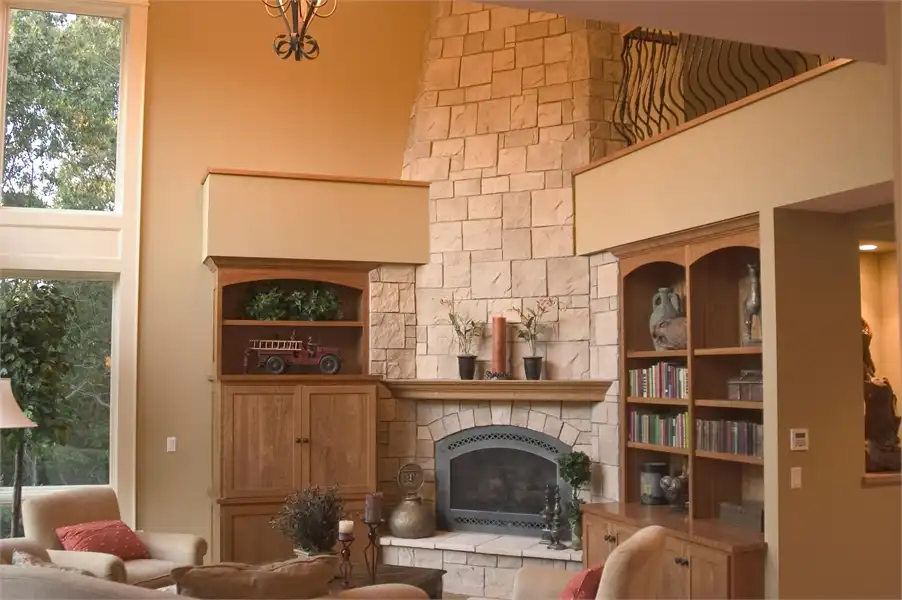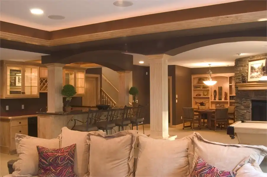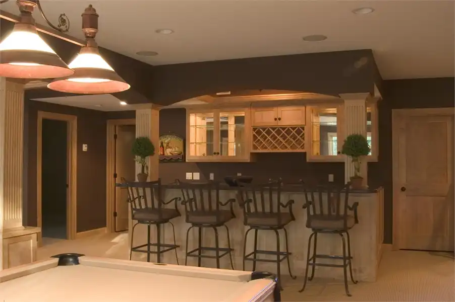 Striking columns and a wraparound porch adorn the façade of this three-bedroom farm house design. Inside, a corner fireplace warms the spacious family room. The island kitchen serves any meal with grace. A quiet study is the perfect spot for reading and reflection. Upstairs, the posh master suite shows off a two-way fireplace and a spa tub. You'll notice that laundry facilities are located on the first and second levels of the home. The lower level is designed for games and relaxation.